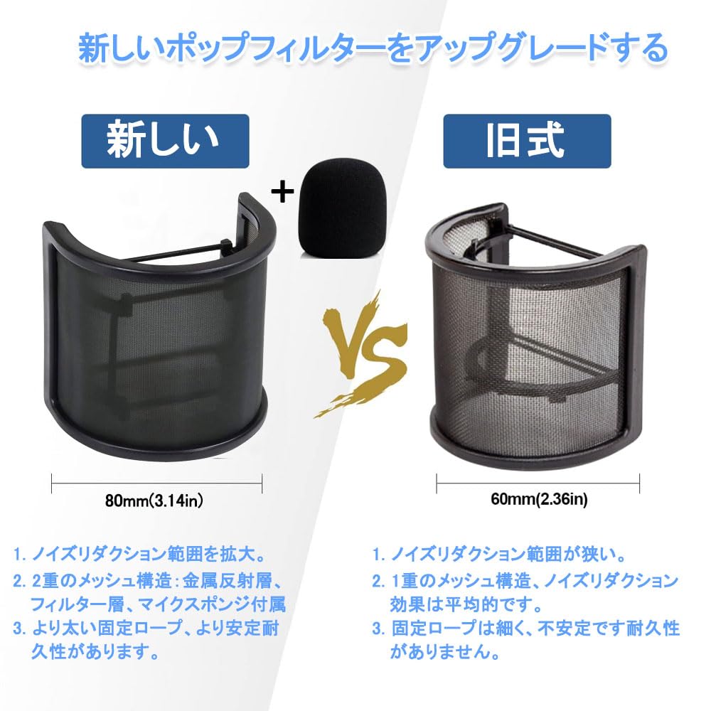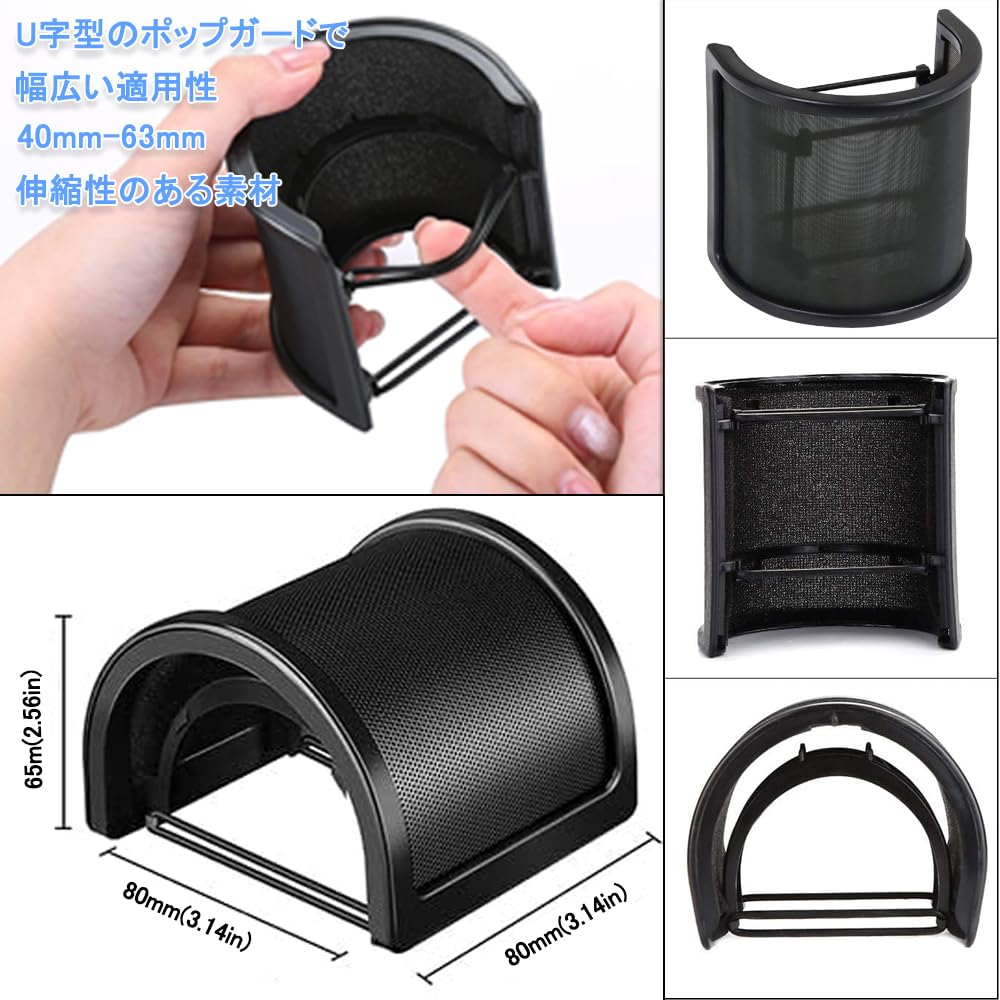 【 独特のU型アーチデザイン 】ユニークなU形アーチデザインにより様々なタイプのマイクに装着が可能、280°カバーでノイズが入りにくい。U型 ポップガード は コンパクト で邪魔にならず省スペースで使用可能。小さく 軽量 です。マイクフィルタは弾力ゴムバンドを備わって、しっかり固定、便利かつ迅速に取り付けたり取り除くことができます。開封後すぐにご使用いただけます。