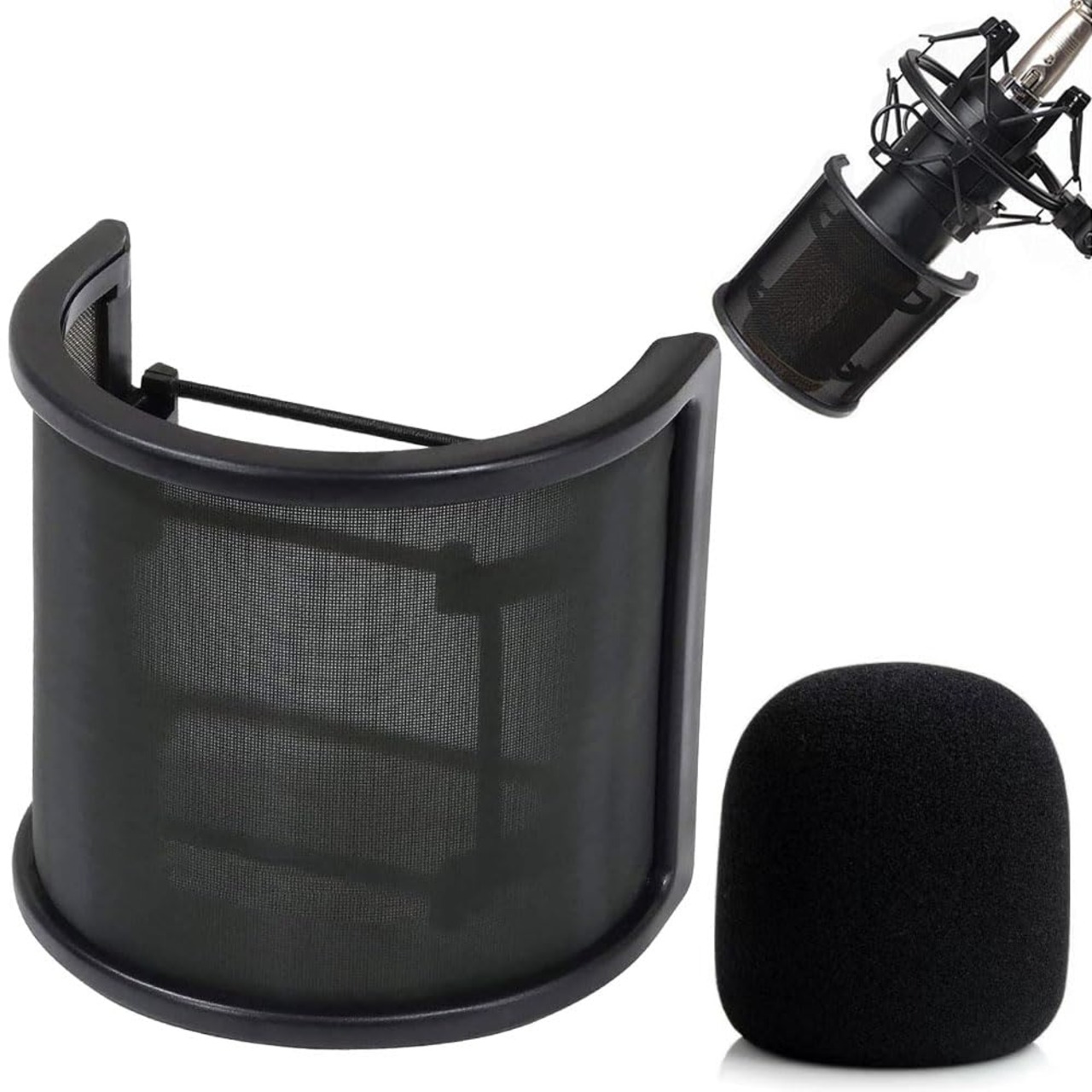 【人気商品】2024 ポップガード マイクポップガード マイクスポンジ プロシンガー監修 マイクカバー リフレクションフィルターノイズ防止 スポンジ層搭載モデル 金属+スポンジ弾性ゴムバンド付 Φ40~63mmマイク対応 U型マイクカバー (スポンジ層なし 黒)