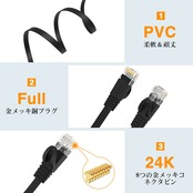 フラットタイプデザイン:超フラットタイプのLANケーブルのデザインで、カーペットの下やドア、すき間にしっかり配線できます。ランケーブルは非常に柔軟で、スムースながら頑丈で、壁に沿って並ぶのが簡単で、従来の丸型LANケーブルより美しく、狭い場所への配線に最適です。