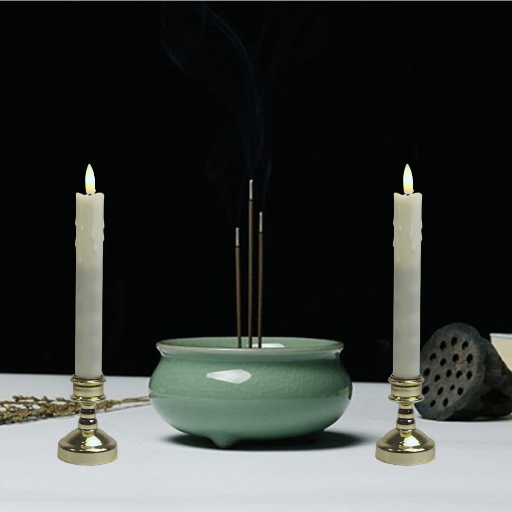 QBeau 電気ローソク 仏壇 リモコン式 2本セット 燭台付き 仏前ろうそく LEDろうそく ledキャンドル 火を使わない 安心 安全