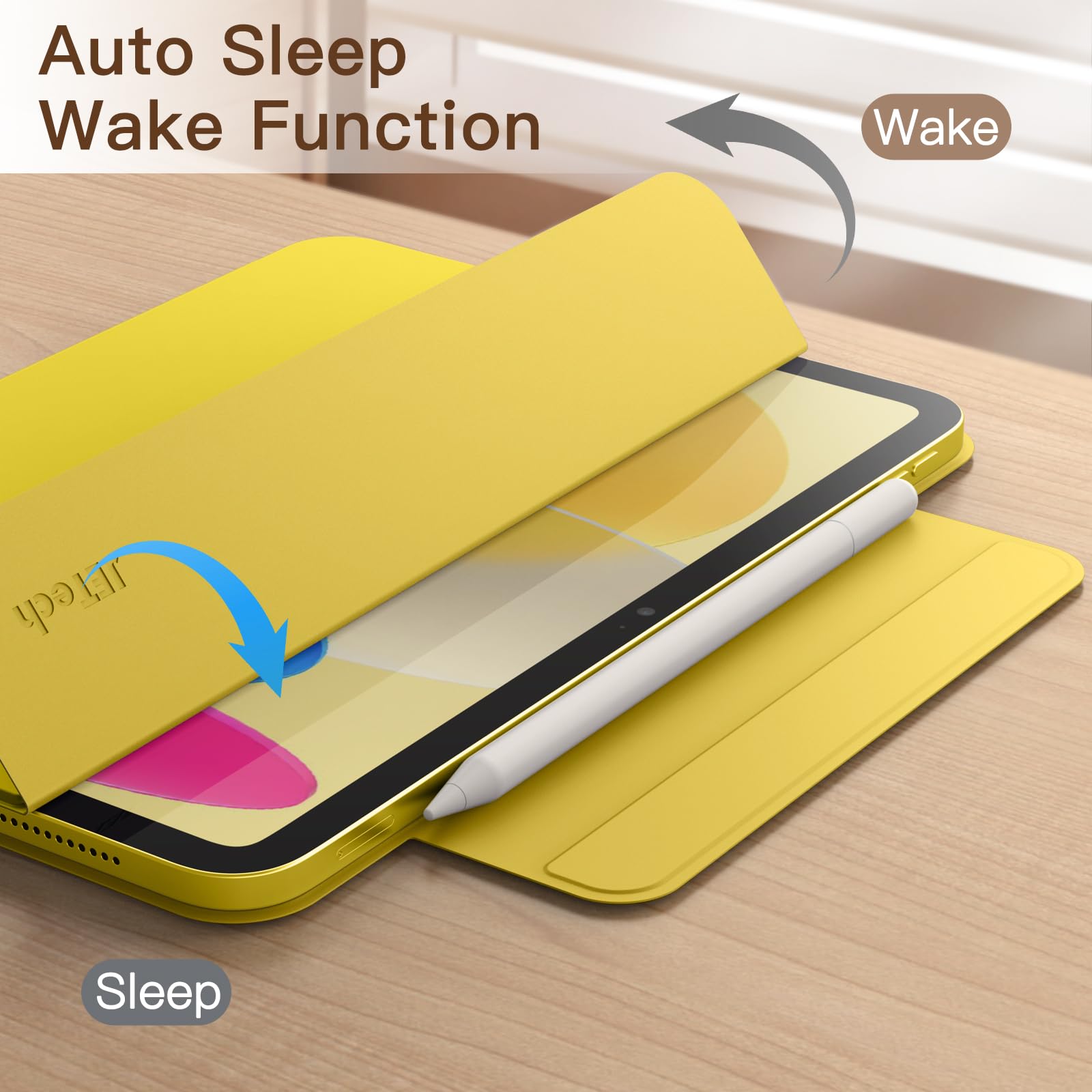 JETech iPad(A16)ケース 第11/10世代(2025/2022モデル)用マグネットケース 磁気吸着 スリムスマート薄型保護カバー 自動ウェイクアップ/スリープ (イエロー)
