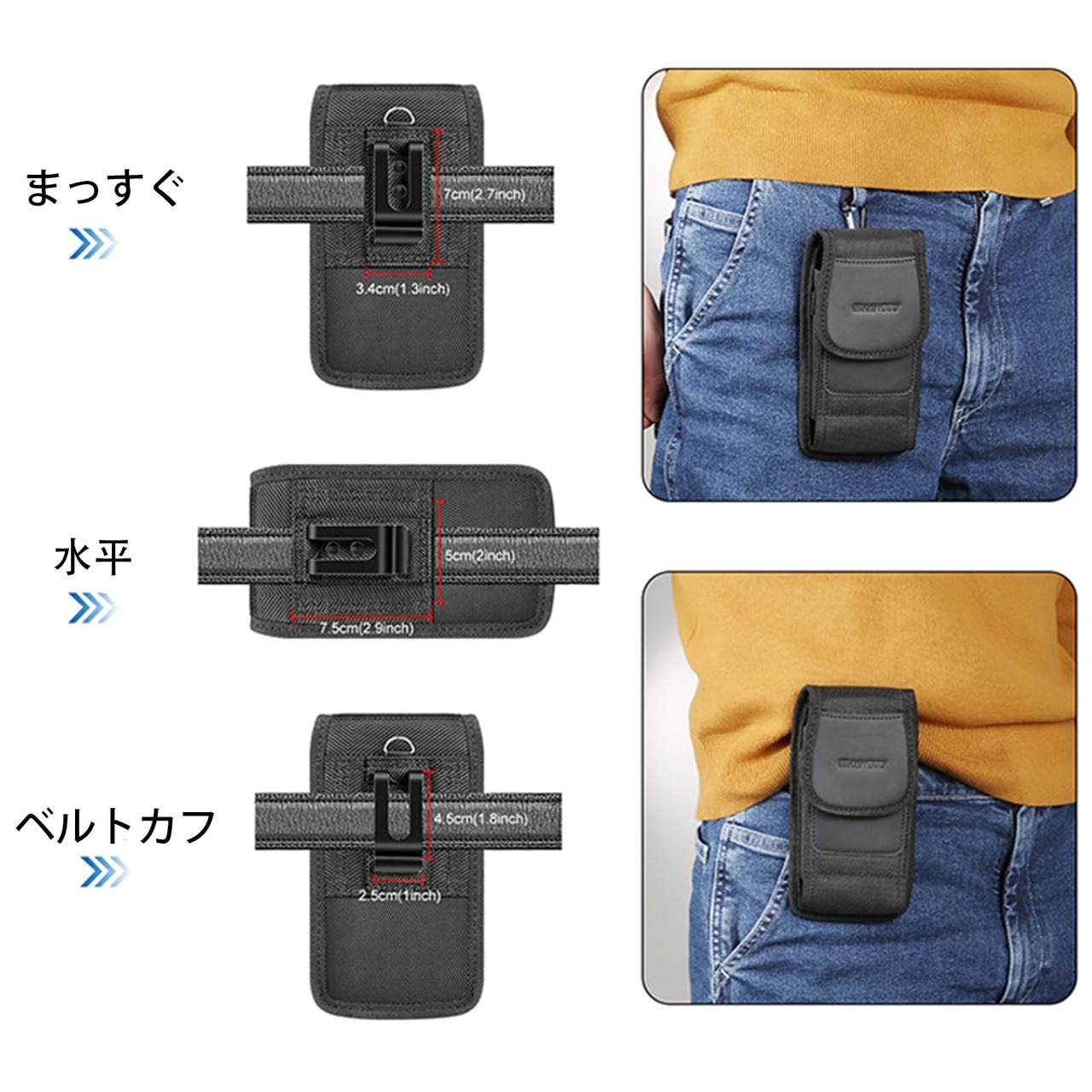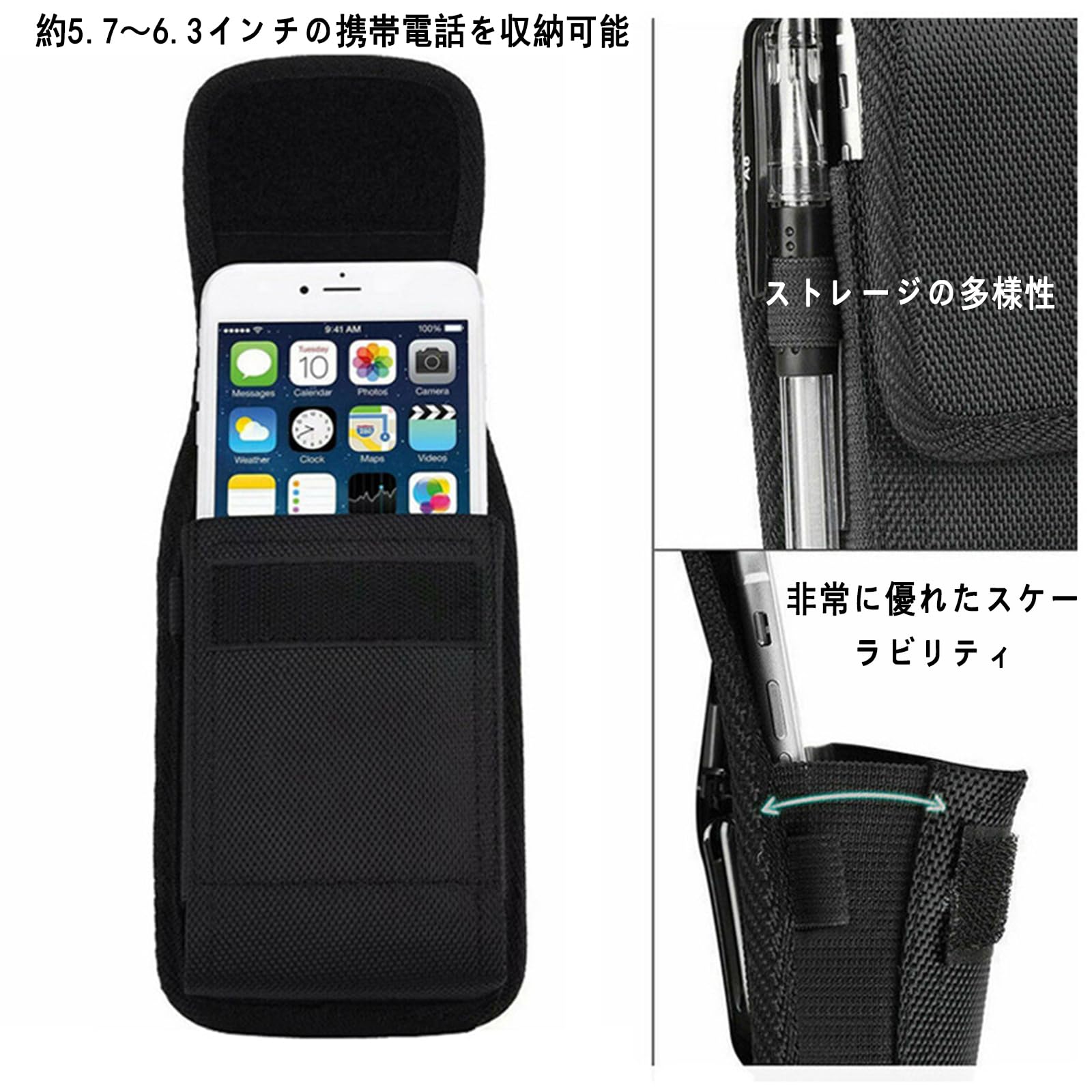 【簡単便利】携帯バッグはさまざまな幅のベルトに取り付けることができます。5.7-6.3インチ型携帯電話に適しています。簡単で便利で、携帯電話を素早く取り出すことができます。軽量で手触りがよい。
