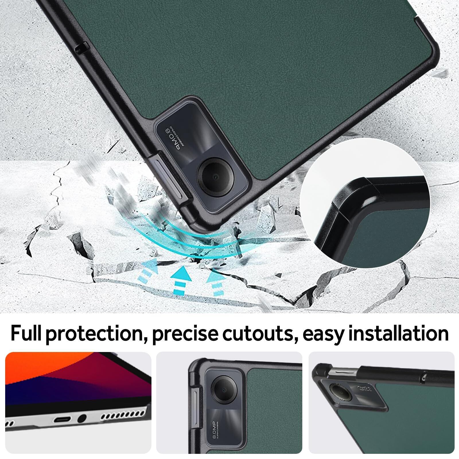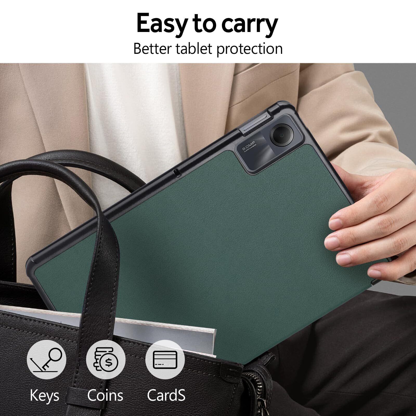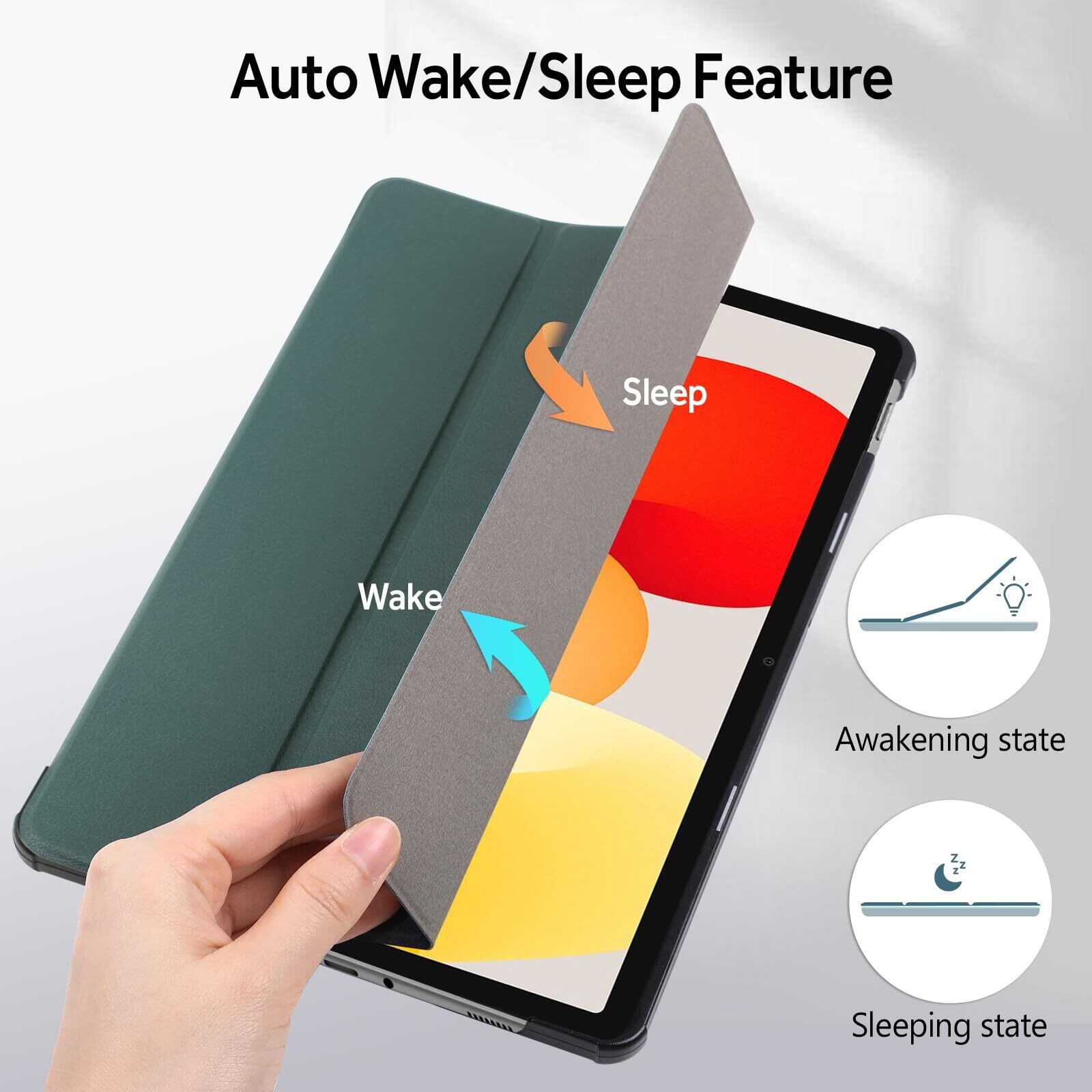 Hianjoo Xiaomi Redmi Pad SE 対応 ケース 11インチ タブレットケース Redmi Pad SE 11インチ 対応 カバー スタンド機能付き オートスリープ機能 PUレザー 全面保護ケース 軽量 薄型 擦り傷防止 - ダークグリーン