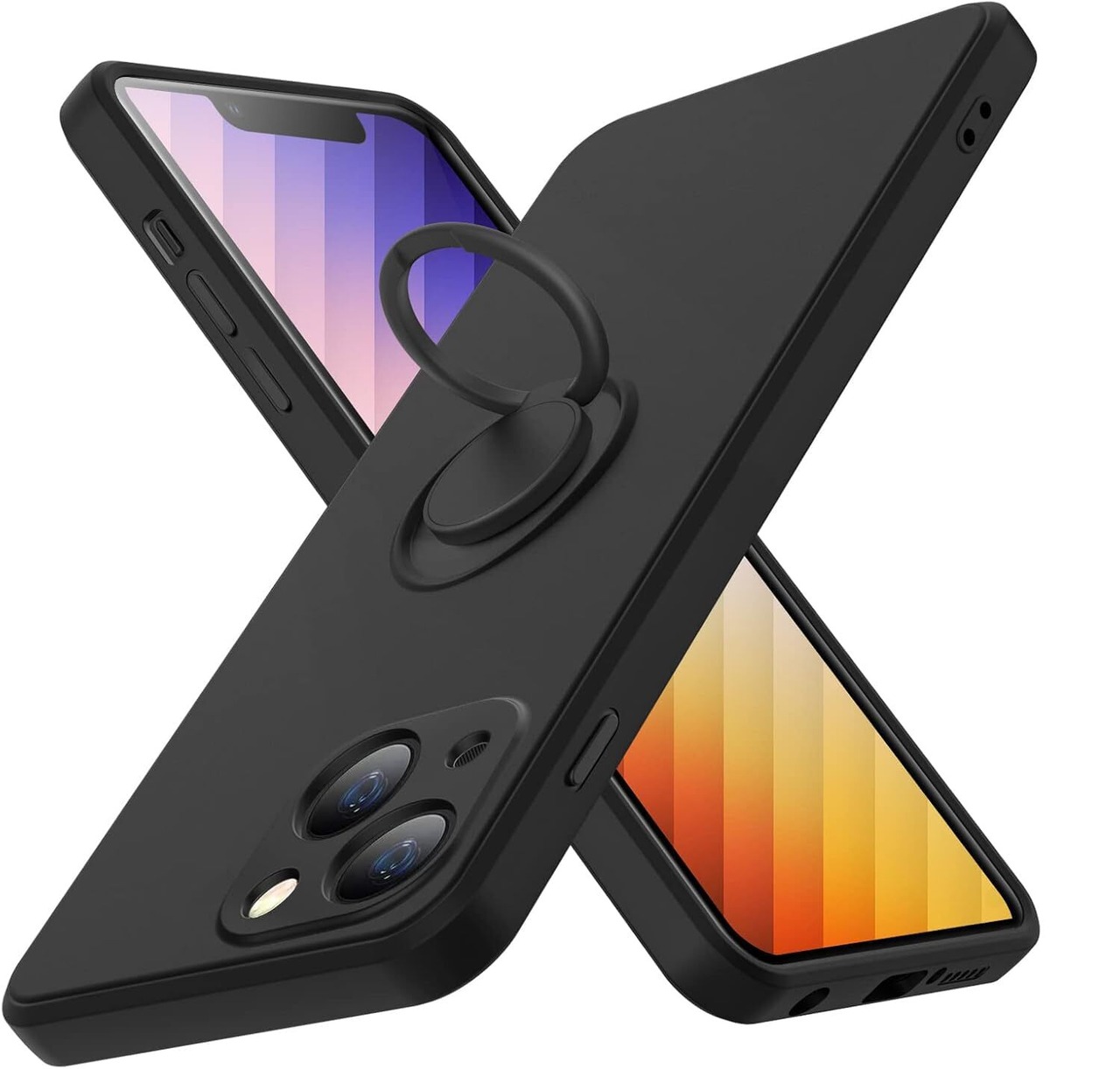 iPhone 14 ケース 耐衝撃リング付き シリコン 薄型 スリム tpu 磨り表面 指紋防止 iPhone 14 カバー 柔らかい裏地 米軍MIL規格 黄ばみなし レンズ保護 滑り止め 柔軟性 擦り傷防止 黒 N413-Aip14-01