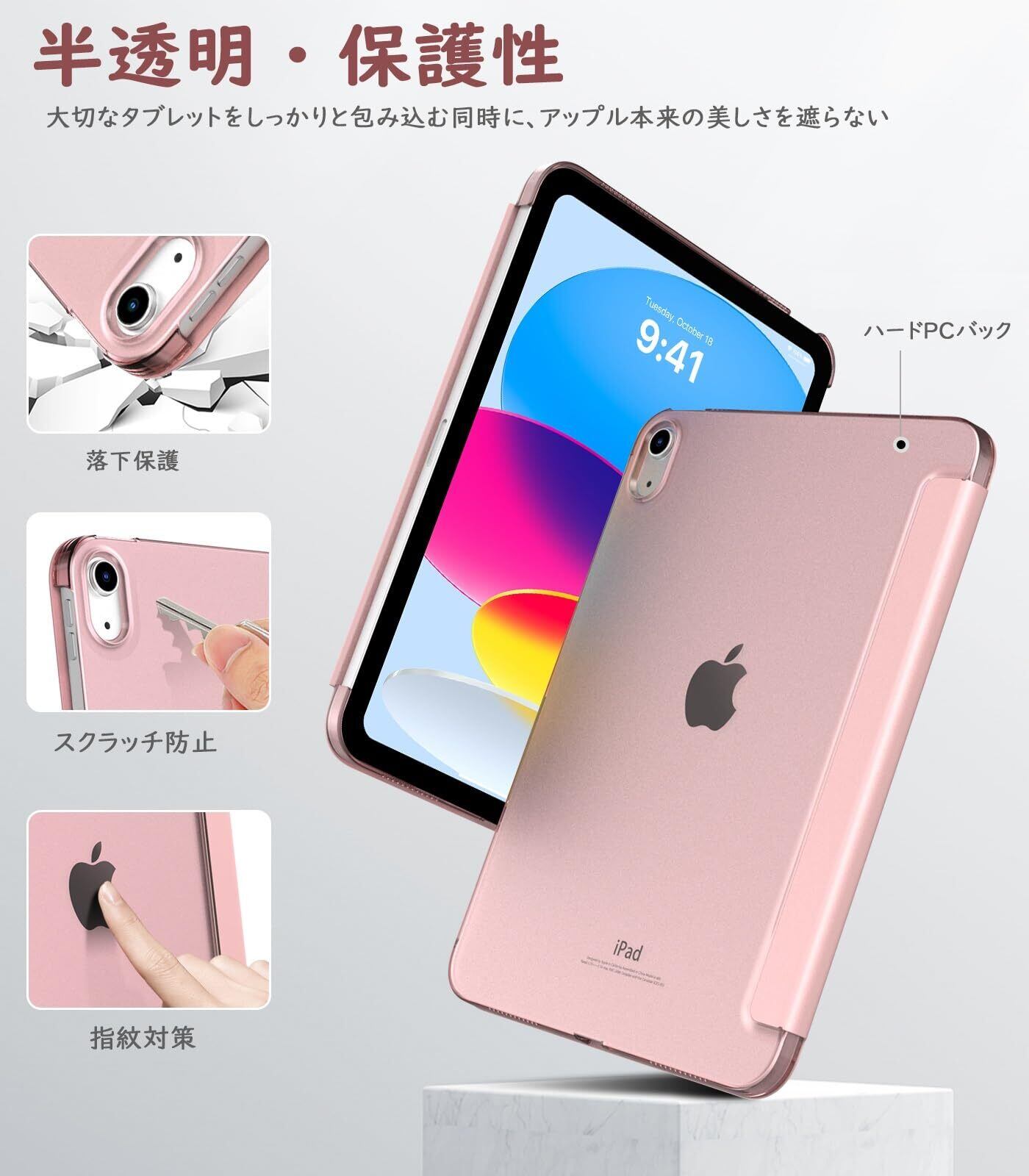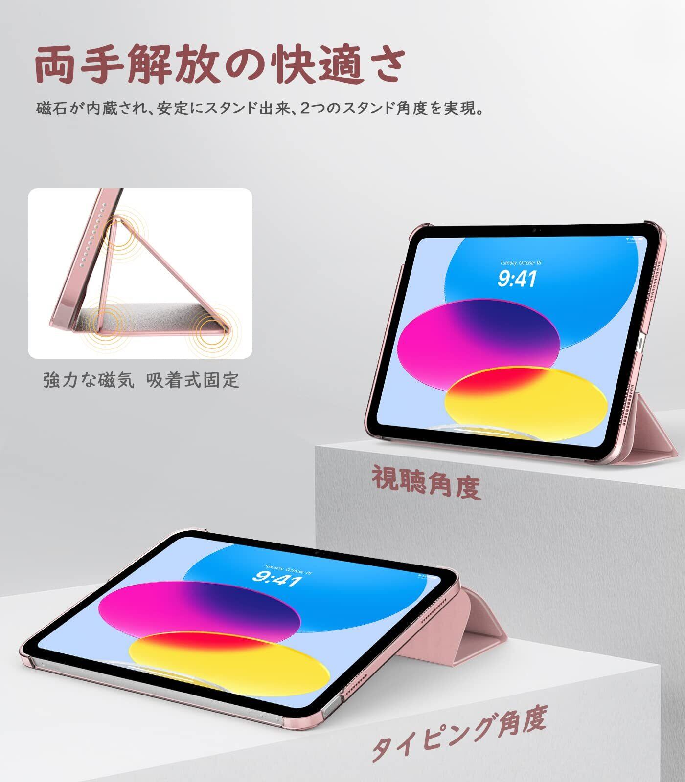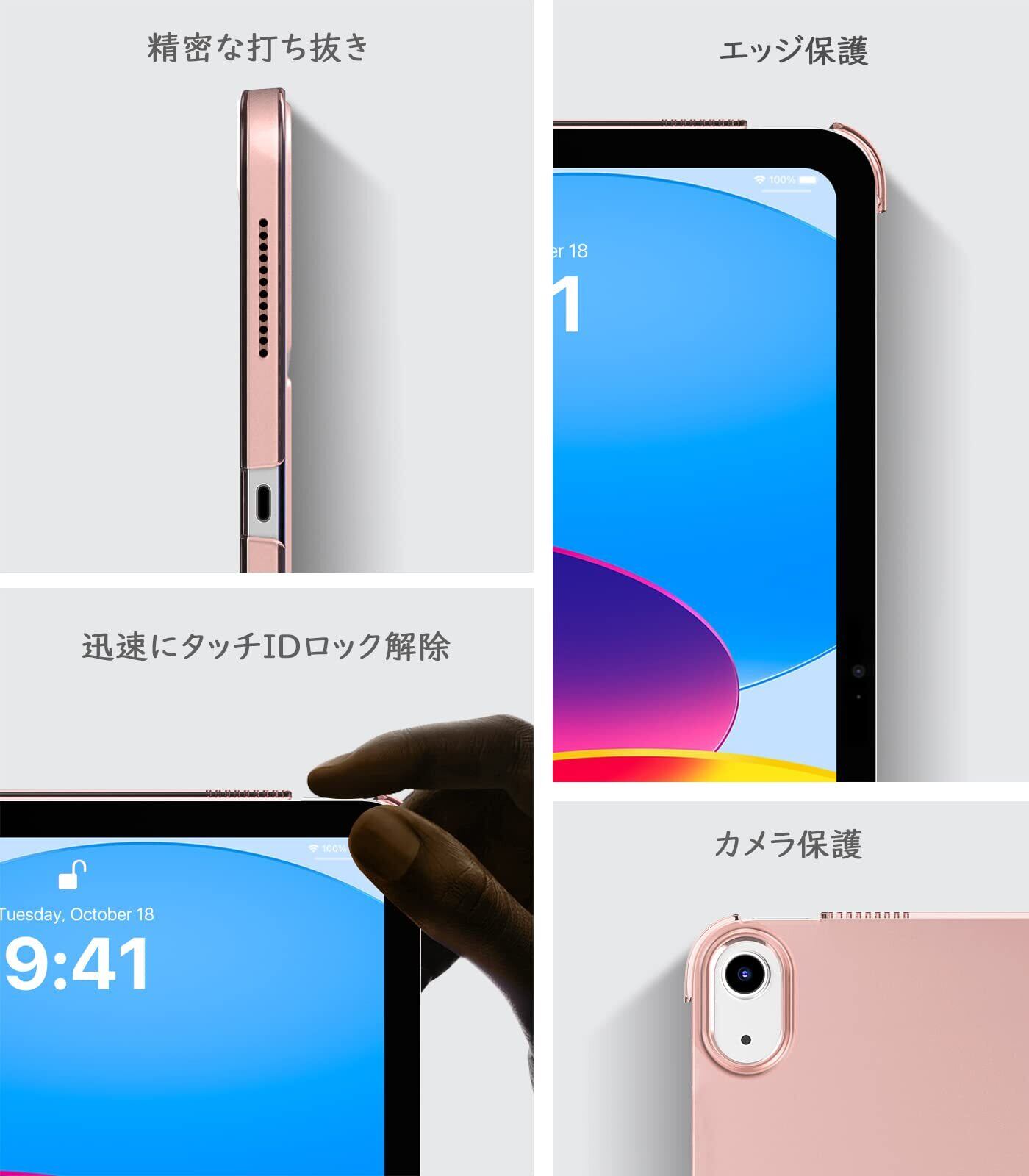 【在庫セール】TiMOVO iPad (A16)11世代 ケース 11インチ 2025モデル/ iPad 第10世代 ケース 10.9インチ 2022モデル ハードカバー PUレーザー 開閉式 三つ折り スタンド マグネット オートスリープ機能 耐衝撃 軽量 落下防止 精密設計 着脱簡単 半透明 ローズゴールド
