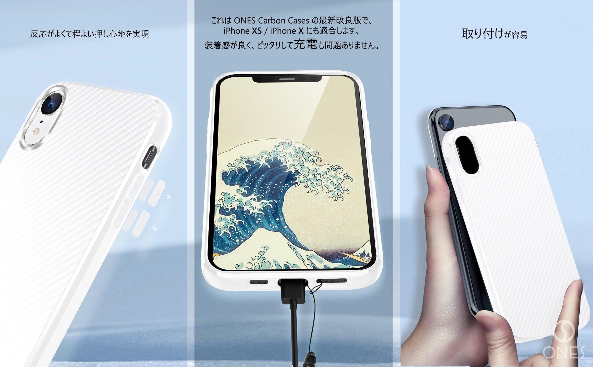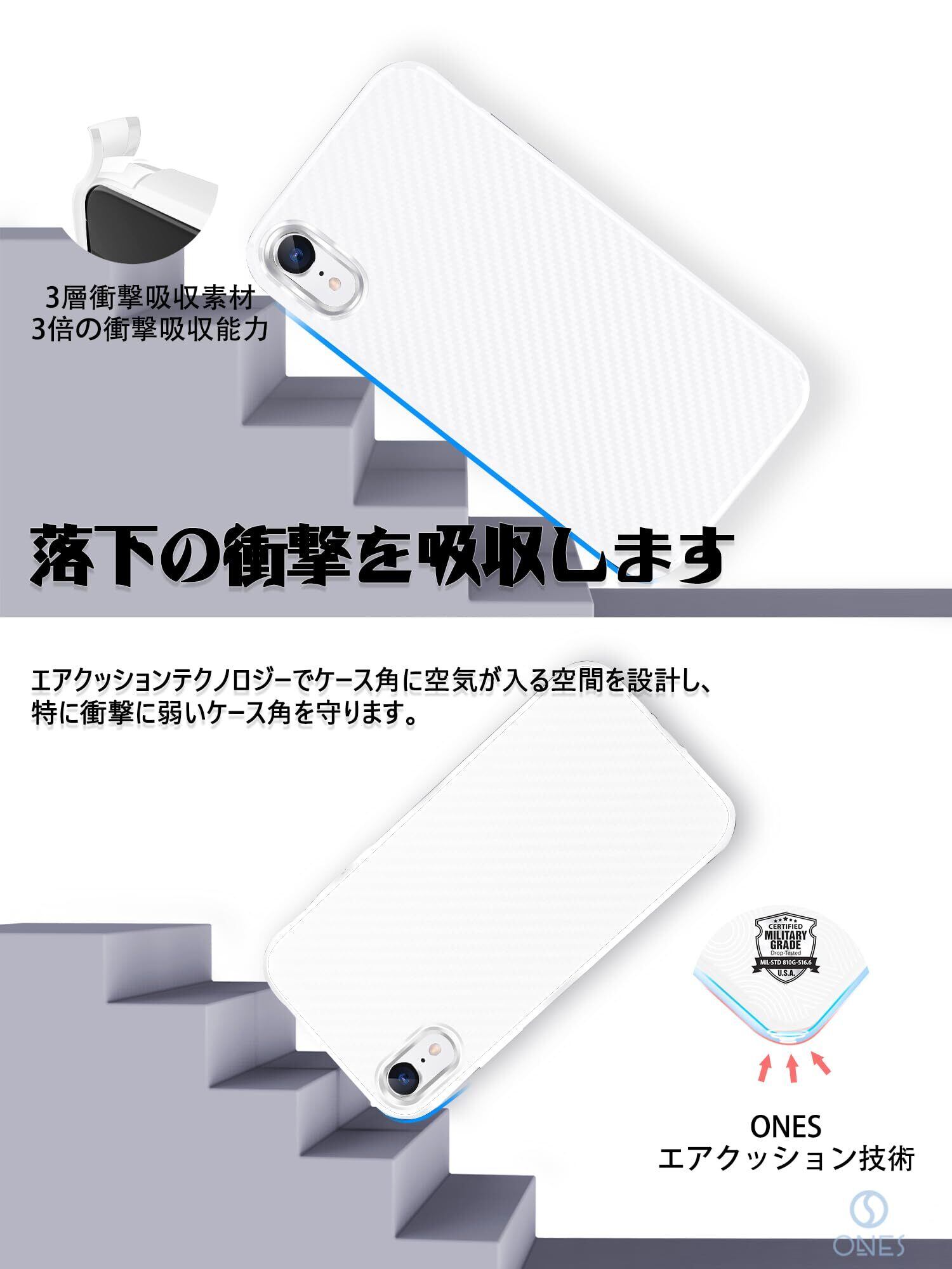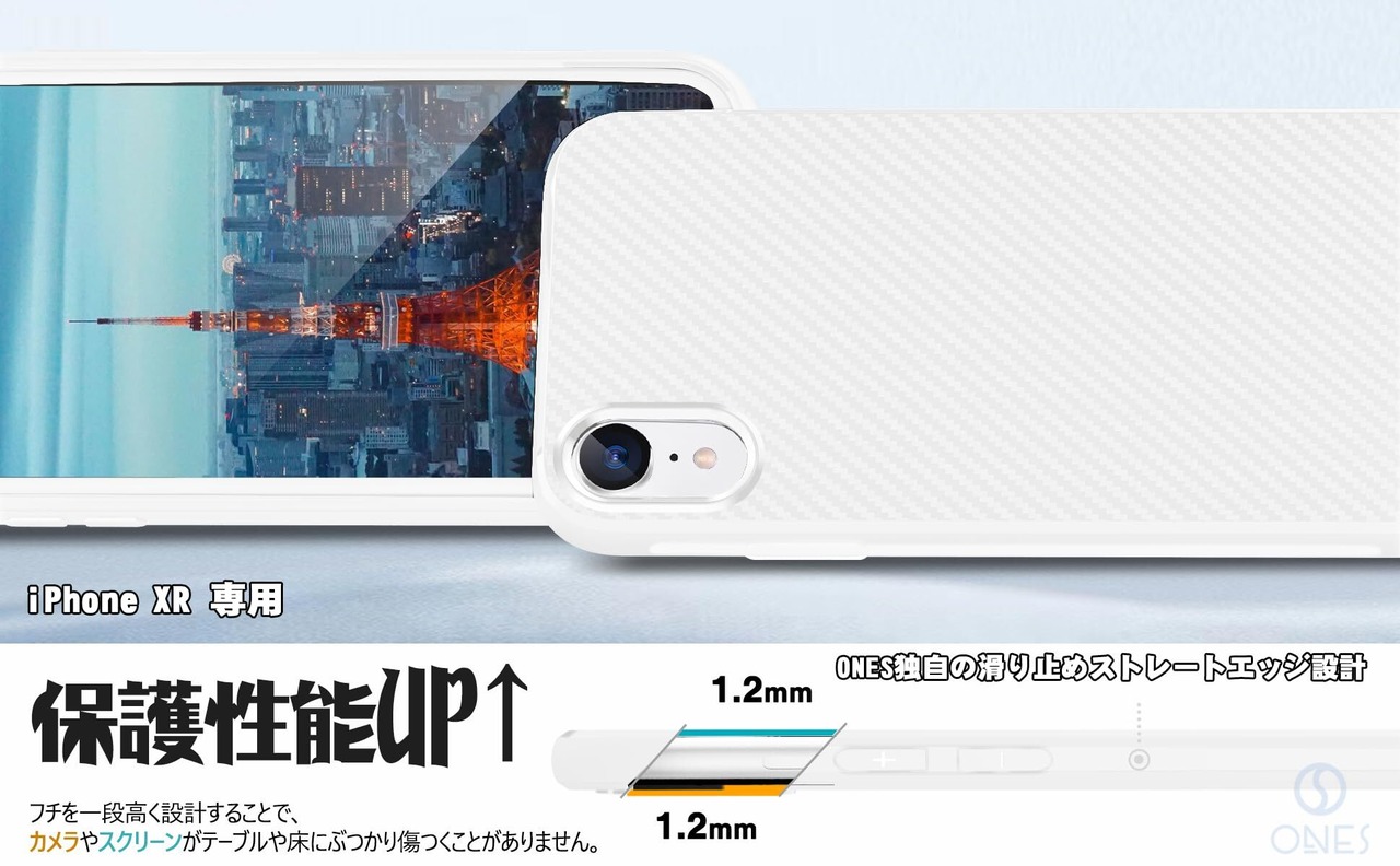 【在庫セール】ONES 超薄型 iPhone XR ケース 米軍MIL規格 超耐衝撃 炭素繊維テクスチャ · 白 『 滑り止めストレートエッジ、 画面 · レンズ保護 』〔 指紋防止、マット感、持ちやすい 〕 衝撃吸収 黄変防止 Qi充電 軽量 カバー
