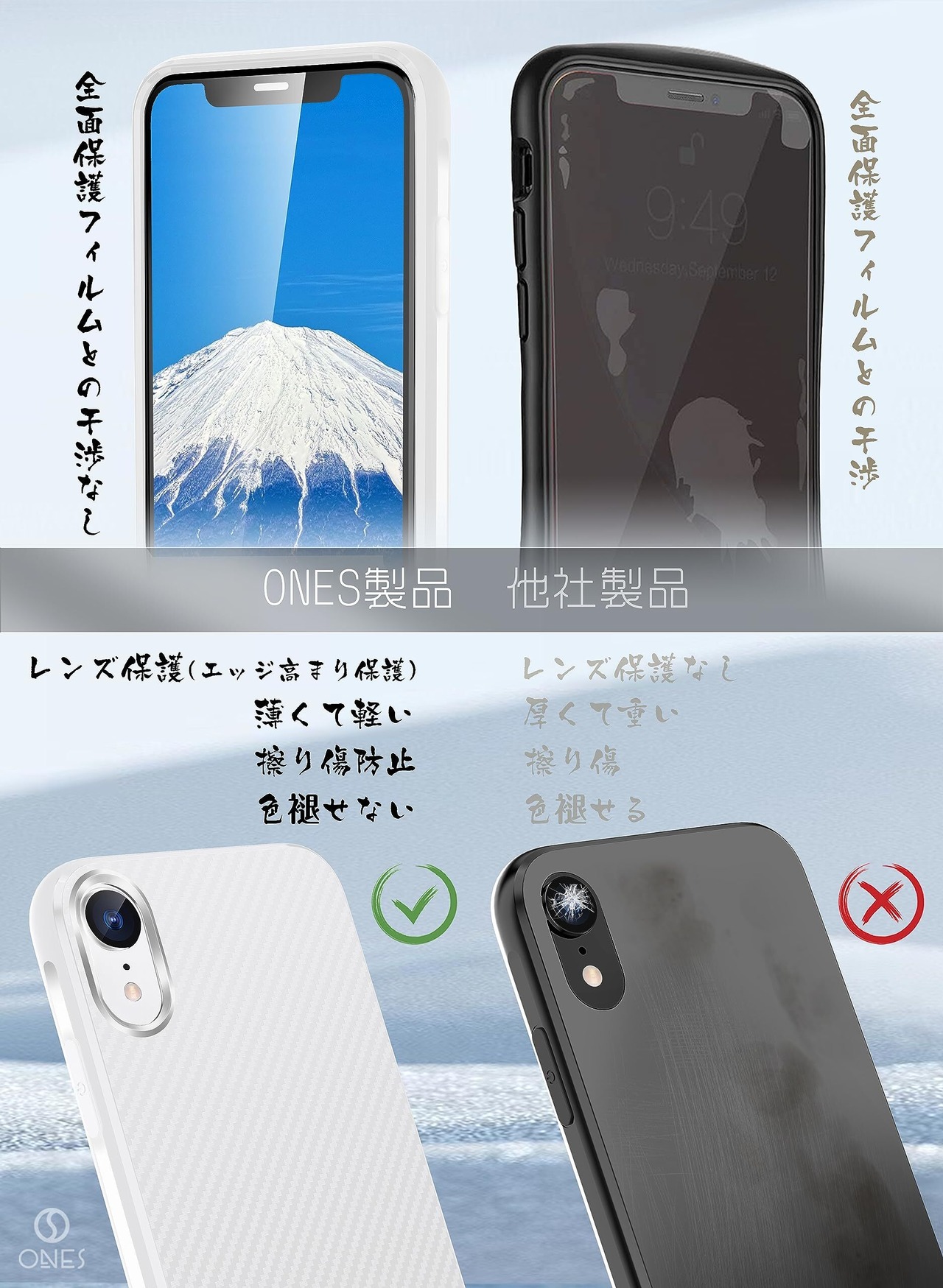 ONES 超薄型 iPhone XR ケース 米軍MIL規格 超耐衝撃 炭素繊維テクスチャ · 白 『 滑り止めストレートエッジ、 画面 · レンズ保護 』〔 指紋防止、マット感、持ちやすい 〕 衝撃吸収 黄変防止 Qi充電 軽量 カバー