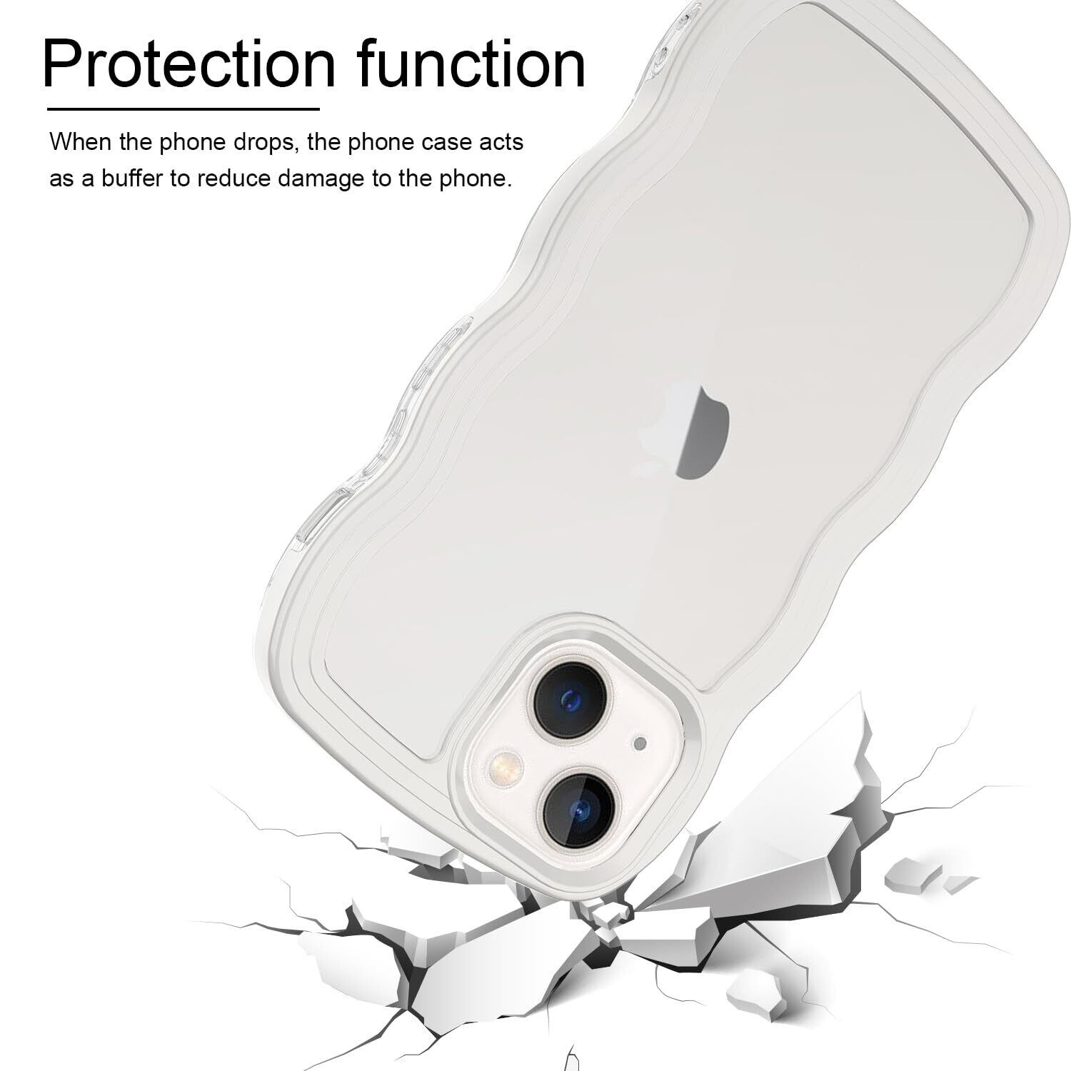 iPhone 13mini ケース クリア ウェーブ アイフォン 13mini TPU波状フレーム うねうね アイフォン13mini 滑り止め スマホケースウェーブ デザイン 手にフィット 韓国 可愛い 女性用 女子向け 透明 ケースカバー 人気 落下防止 耐衝撃 ストラップホール付き アイフォン13mini なみなみ ワイヤレス充電対応(iPhone 13mini-ホワイト)