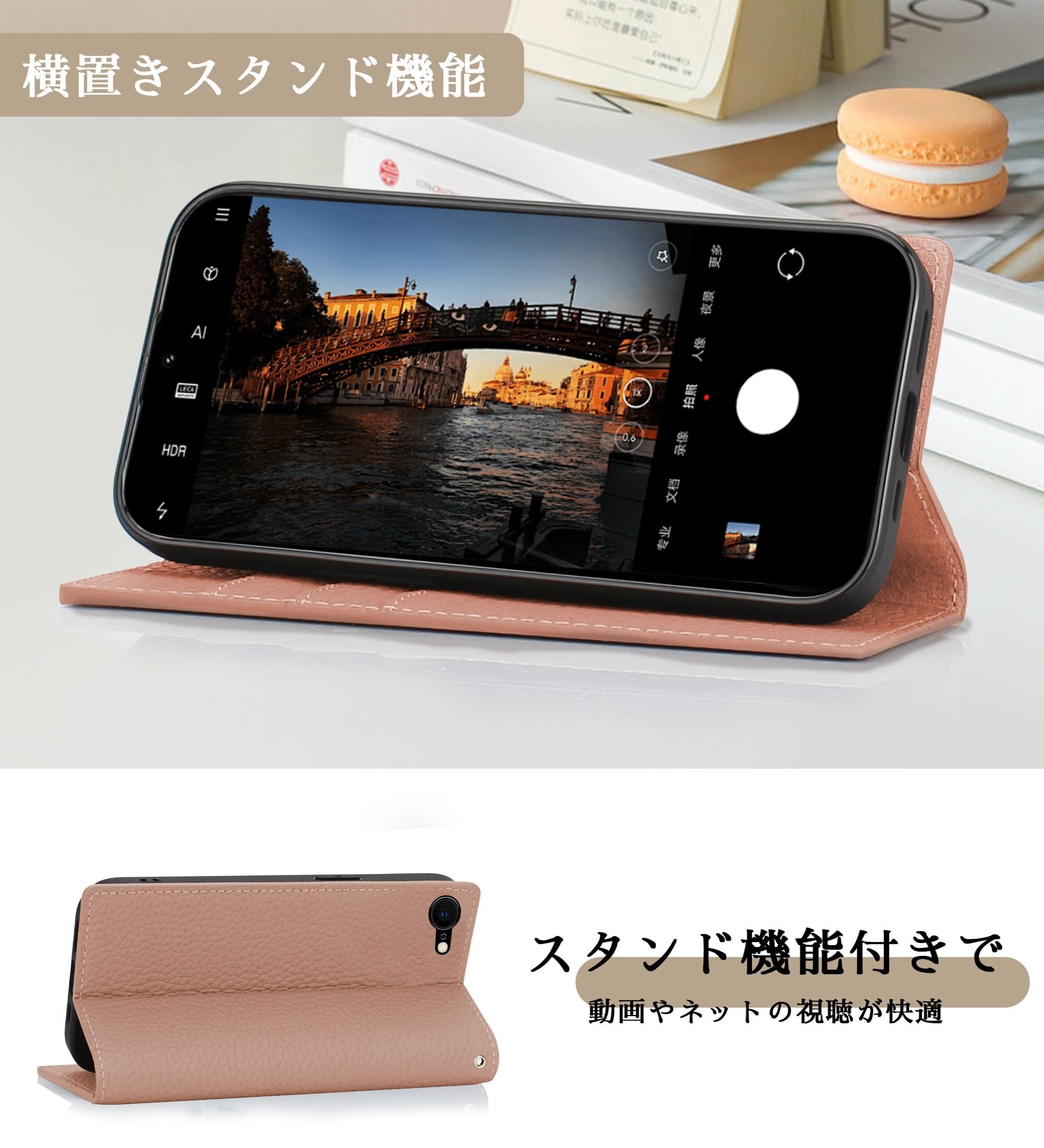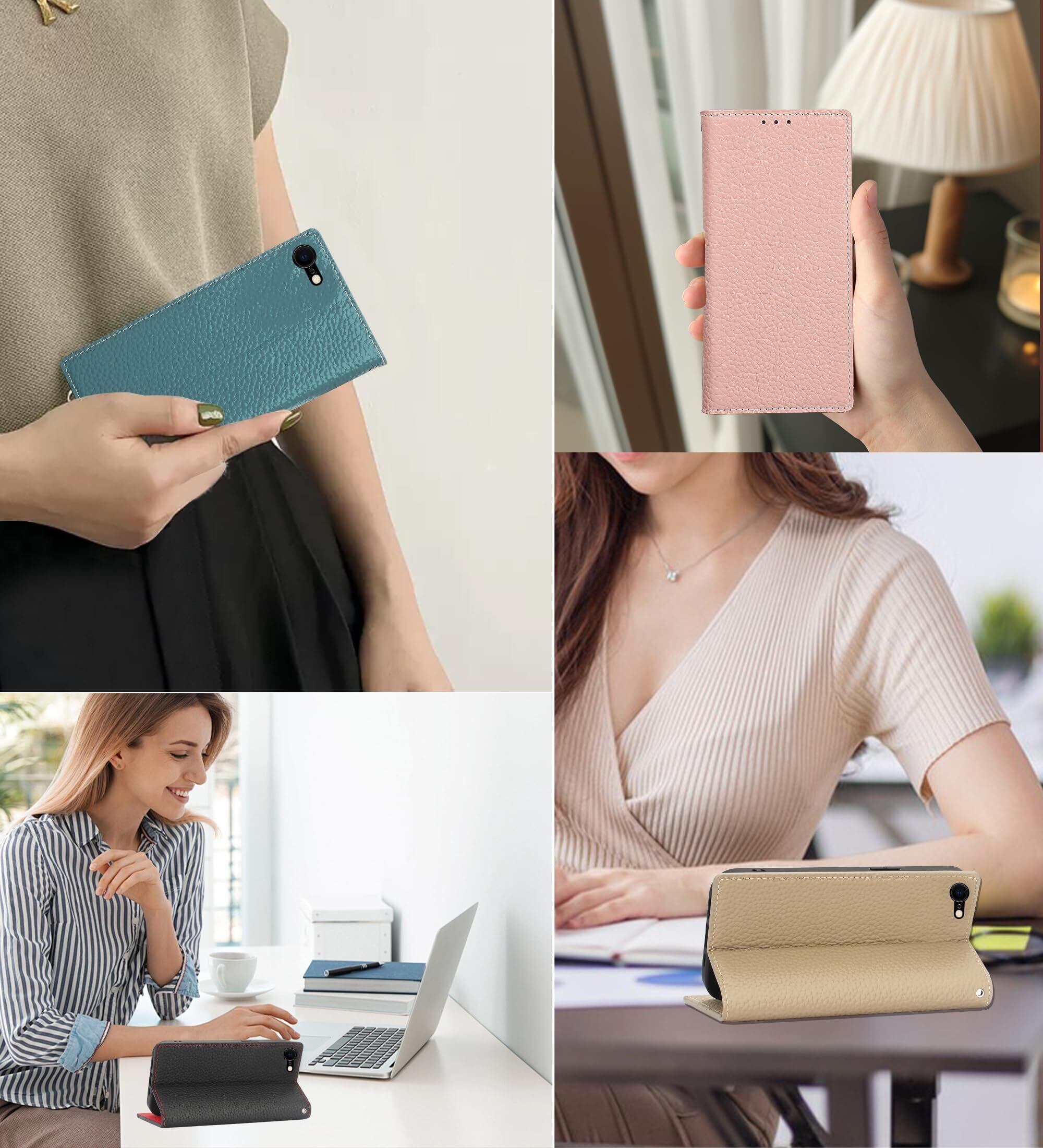 CLICSUN iPhone SE 第2世代 iPhone7 iPhone8 対応ケース 高級牛本革 iPhone se3 ケース 手帳型 アイフォンSE 2020 アイフォン7/8 対応カバー 本革 レザー カバー スタンド機能 ストラップ付き マグネット式 カードポケット ギフトボックス付き ピンク