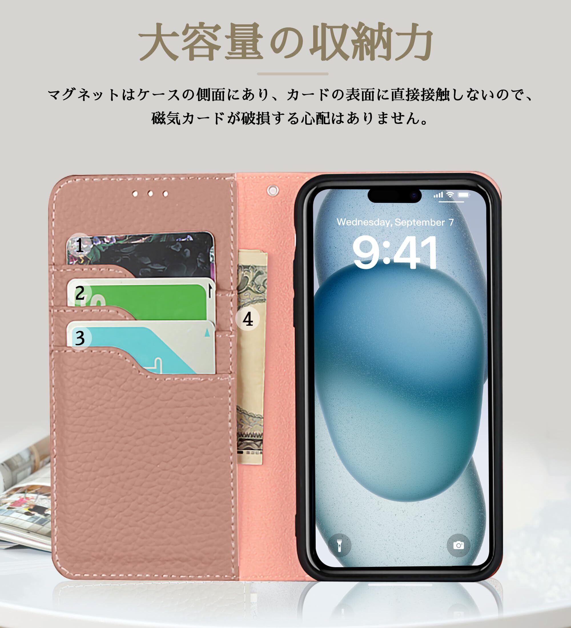 【性能抜群】横置きスタンド機能が付いて、好きな角度で動画鑑賞や読書などを楽しめます。内側には三つのカード入れとフリーポケットが付き、名刺や定期券の収納に優れています。そして、簡単に開け閉めができるから、片手で開きたい方にもとても便利です。