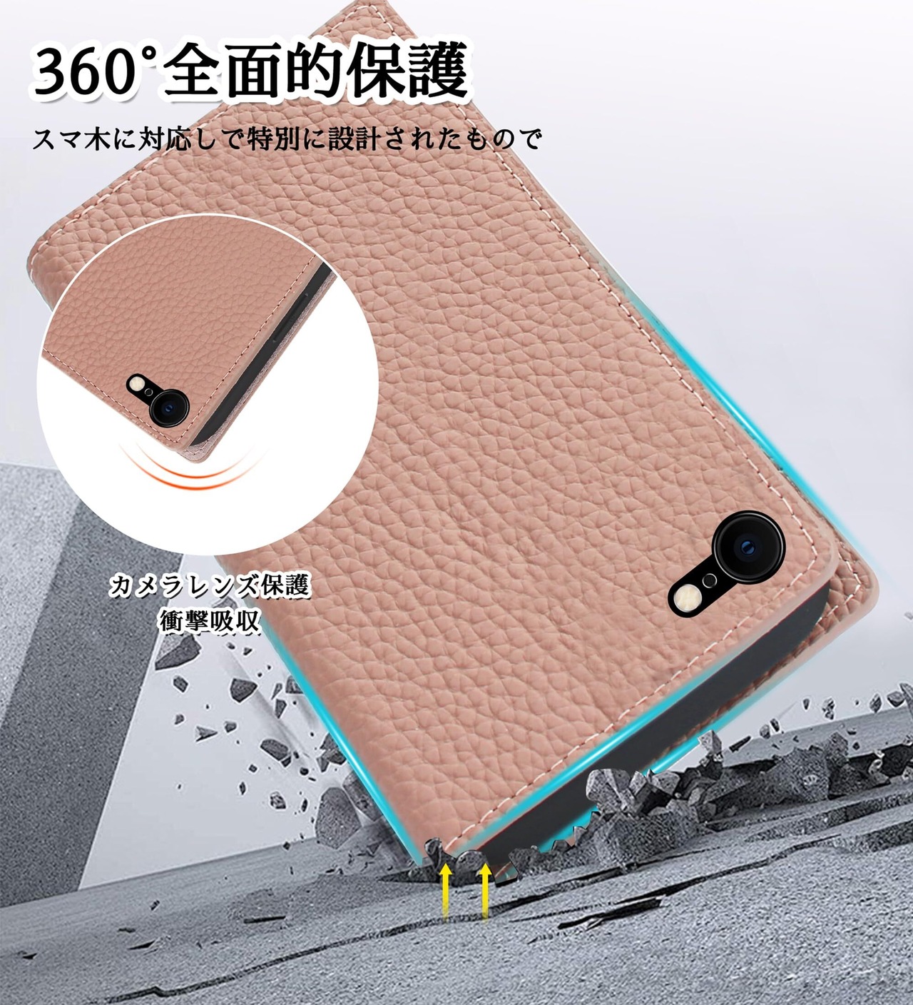 【耐衝撃】大切なスマホを守る安心の手帳型。内部は衝撃吸収性に優れたTPU素材を採用して、落下時の衝撃を効率よく吸収するようにケースの各コーナー内側が設計されています。手帳型ならではの全面保護機能でディスプレイはもちろん、背面もしっかりガードします。