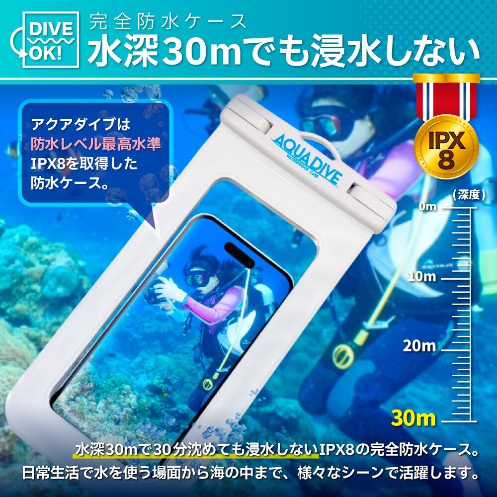 【完全防水ケース】防水レベル最高水準IPX8を取得した防水ケース。水深30mでも浸水しないので、日常生活で水を使う場面から海の中まで様々なシーンで活躍します。