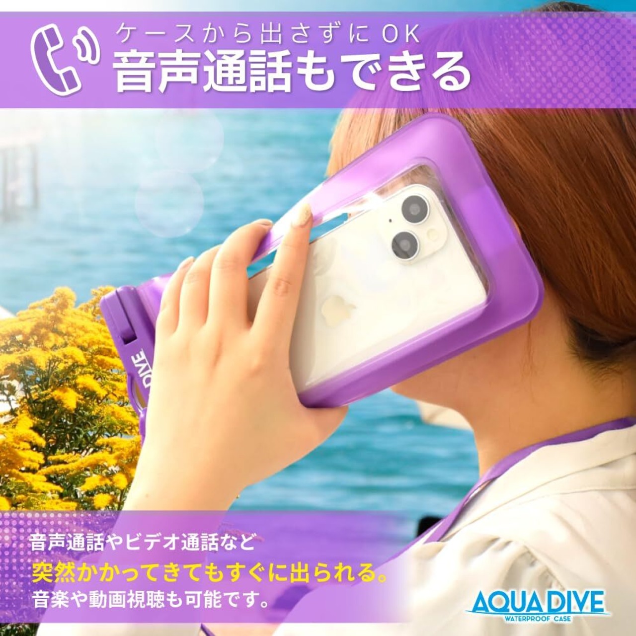 【ケースから出さずにOK】スマホで顔認証可能。手に水がついていてもケースから取り出す必要が無いので便利です。音声通話やビデオ通話、音楽や動画視聴もできます。