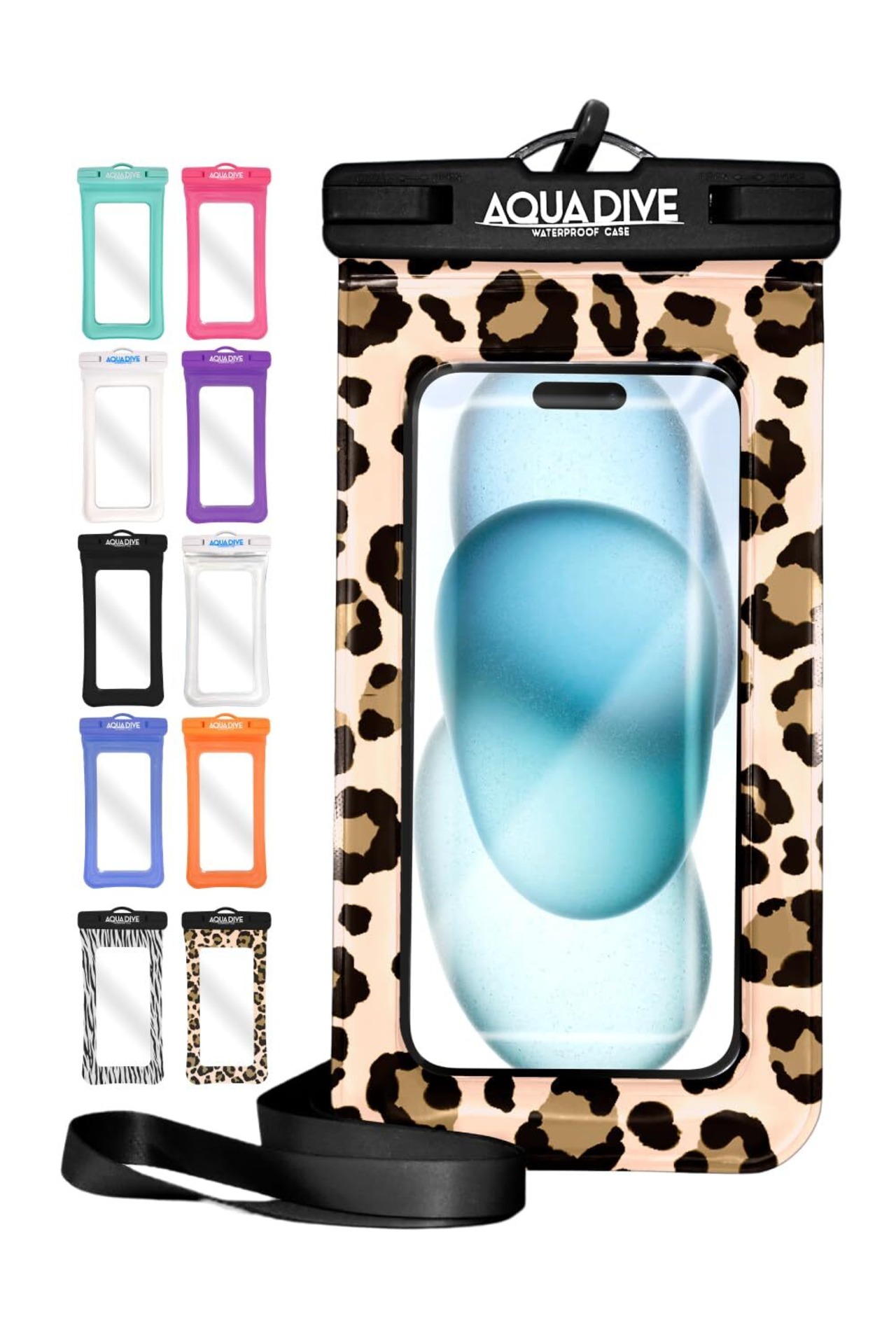 【特価セール】シズカウィル AQUADIVE アクアダイブ スマホ 防水ケース スマホケース スマホ保護 6.8インチ対応 水中 撮影 Face ID対応 エアなし 1個入り レオパード
