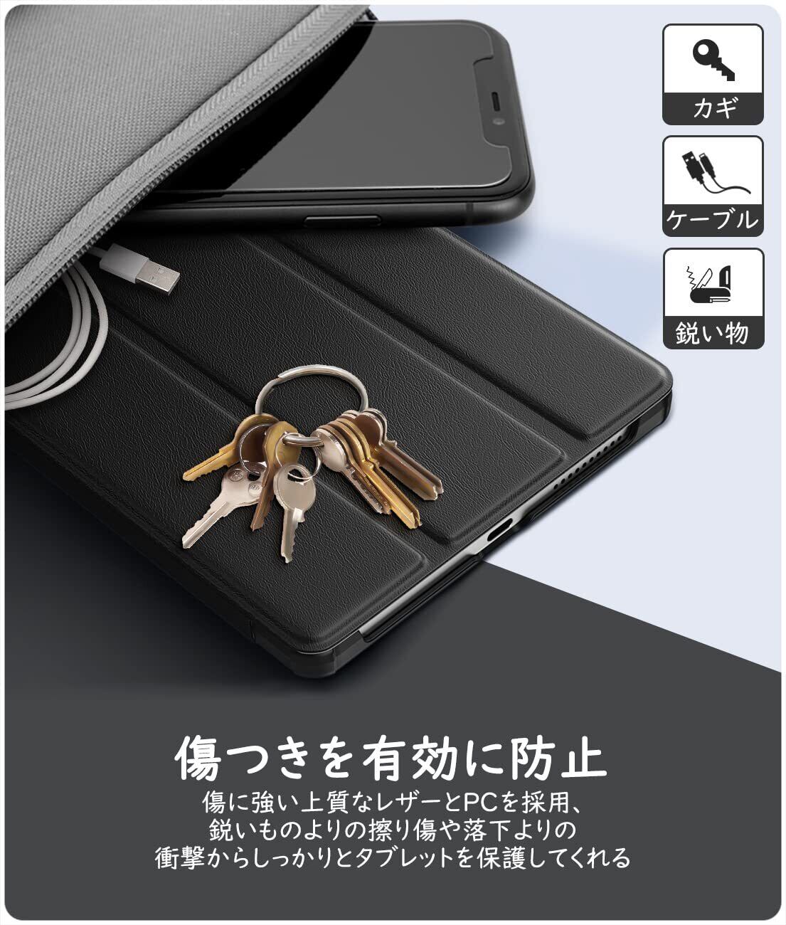 「スタンド機能」 折りスタンド仕様となっており、より安定で多角度調整でき、両手解放で動画・映画鑑賞・読書・ウェブブラウジングやタイピングなど用途に合わせた角度でタブレットを楽しめます。