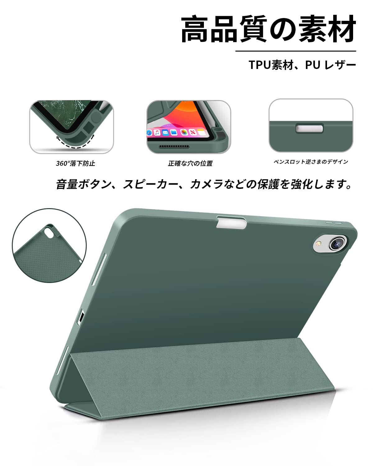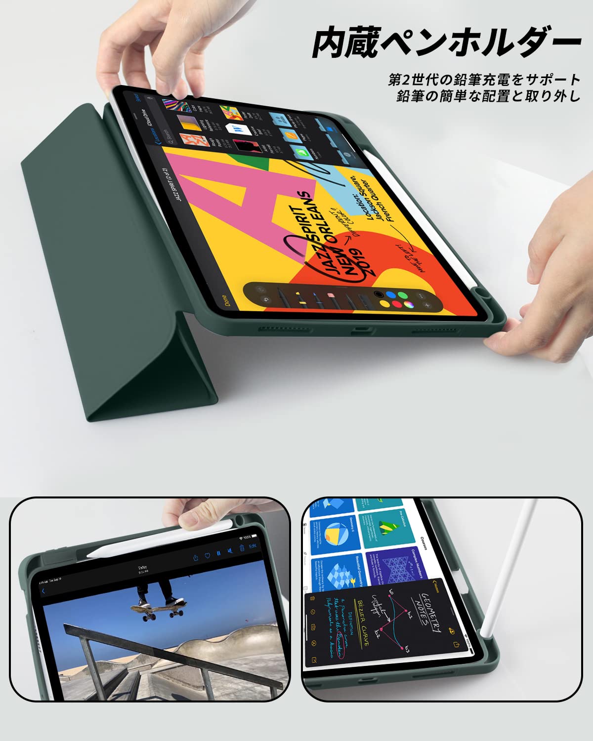 【ペンホルダー】また便利なペンホルダーがあるので、紛失しなくで安心して使えます。第二世代 Pencilワイヤレス充電対応、側面に切り口があり押すだけで簡単にペンを取り外しができる、いつでもどこでもiPadを快適に使えます。
