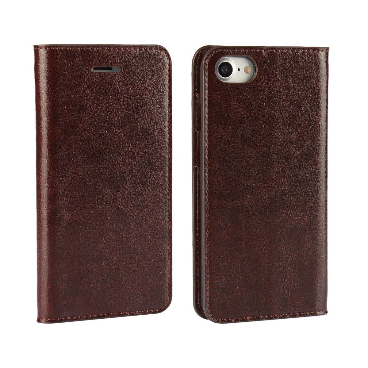 SKIASE iPhone 7/8/SE(第2世代)/SE(第3世代) ケース 手帳型 本革 高級レザー アイフォン7/8/SE2/SE3 通用ケース 携帯カバー 財布型 横置きスタンド機能 カード入れ カード収納 耐衝撃 全面保護 軽量 薄型 落ち着いた色 ダークブラウン