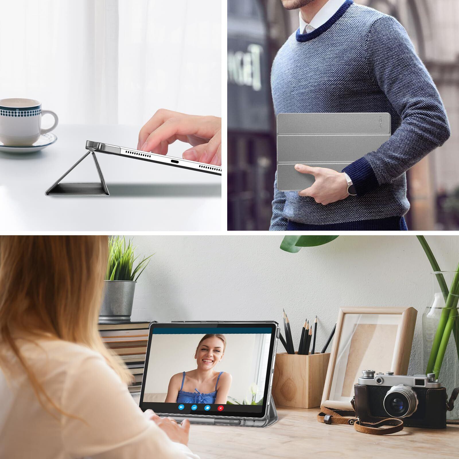 ProCase レノボ Tab M11/B11/K11 10.95インチ / NEC LAVIE Tab T11 11インチ 2024発売 保護ケース 三つ折り ペン収納 フォリオ オートスリープ/ウェイクに対応 TPUバック スマートカバー 対応機種:Lenovo Tab M11、Lenovo Tab B11、Lenovo Tab K11、NEC LAVIE Tab T11-グレー