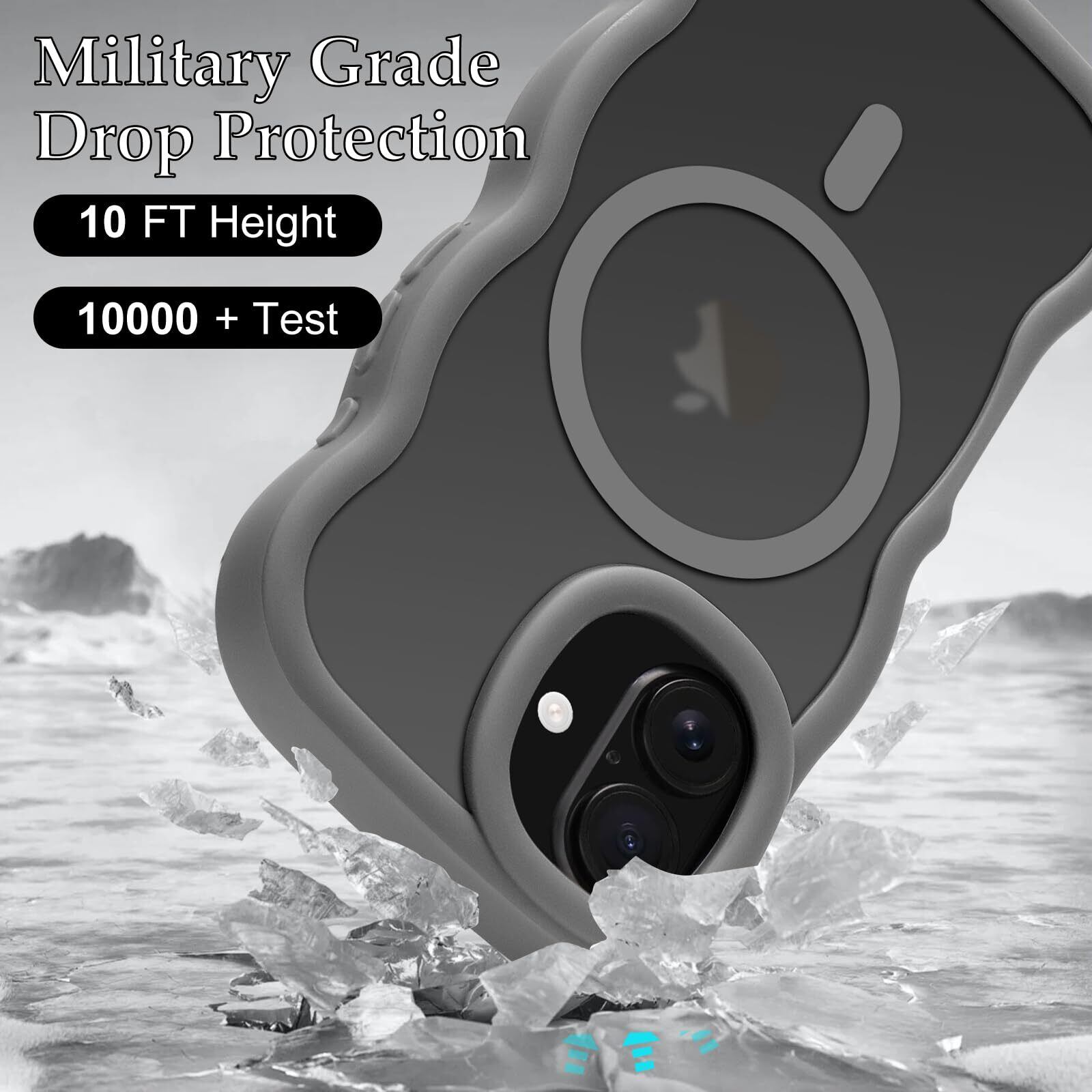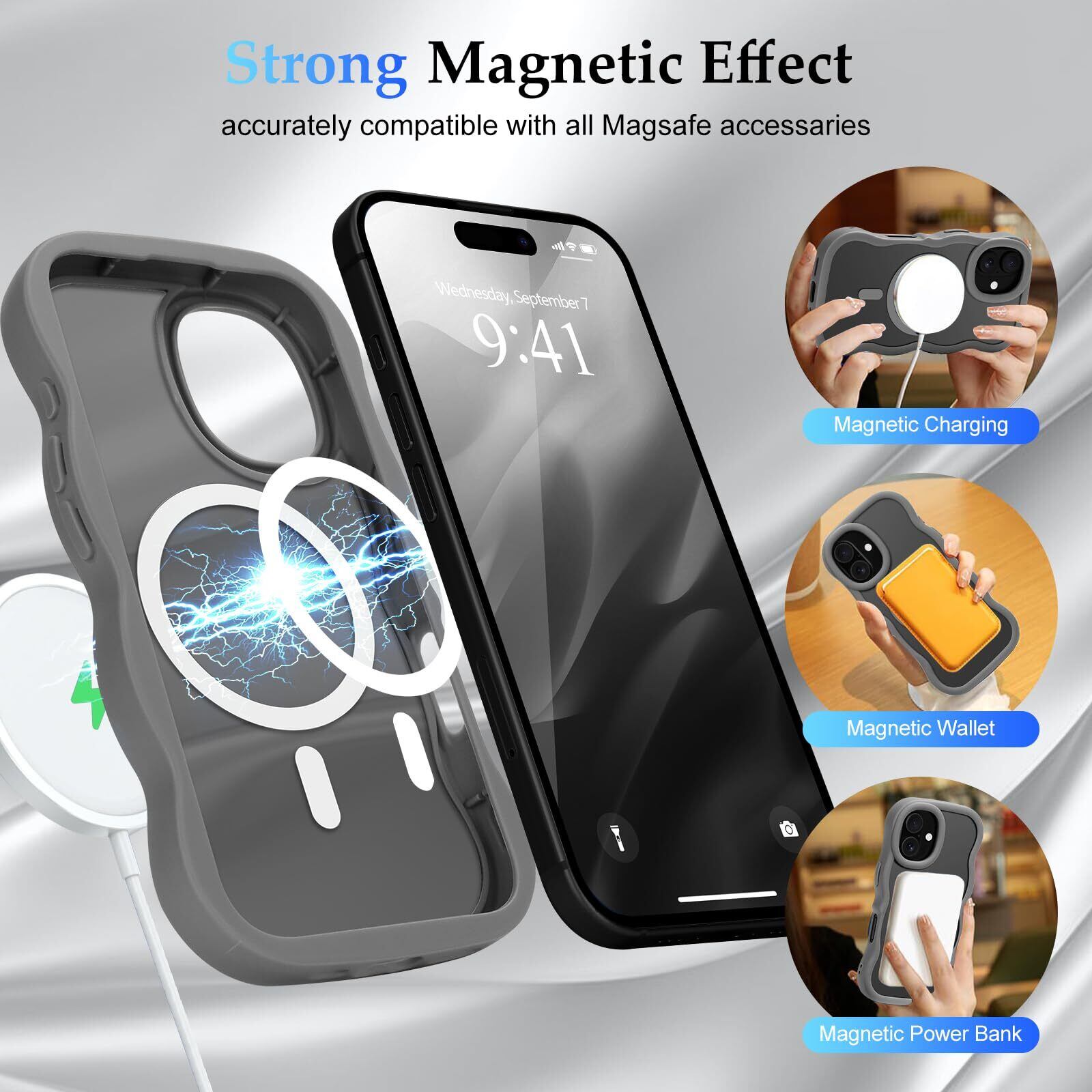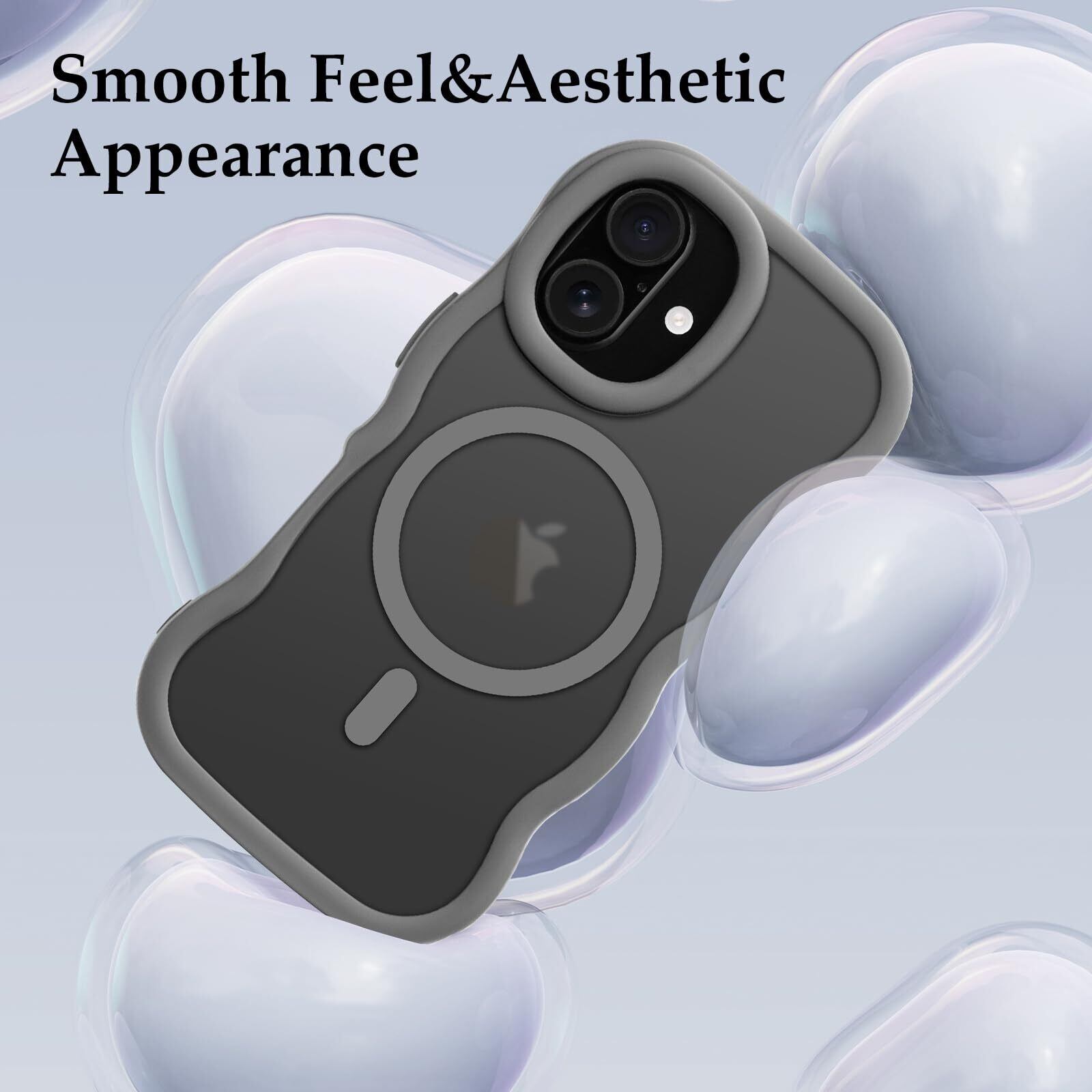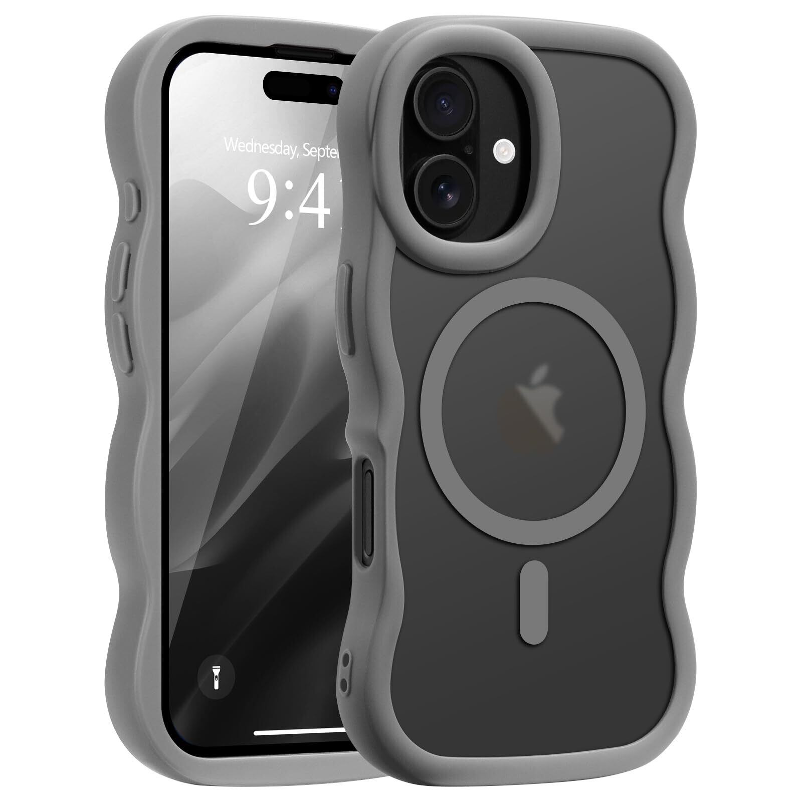 Pepmune iPhone 16 ケース MagSafe対応 ウェーブ 半透明 滑り止め おしゃれ 可愛い 韓国 耐衝撃 指紋防止 ワイヤレス充電 スマホケース ストラップホール付き(グレー)