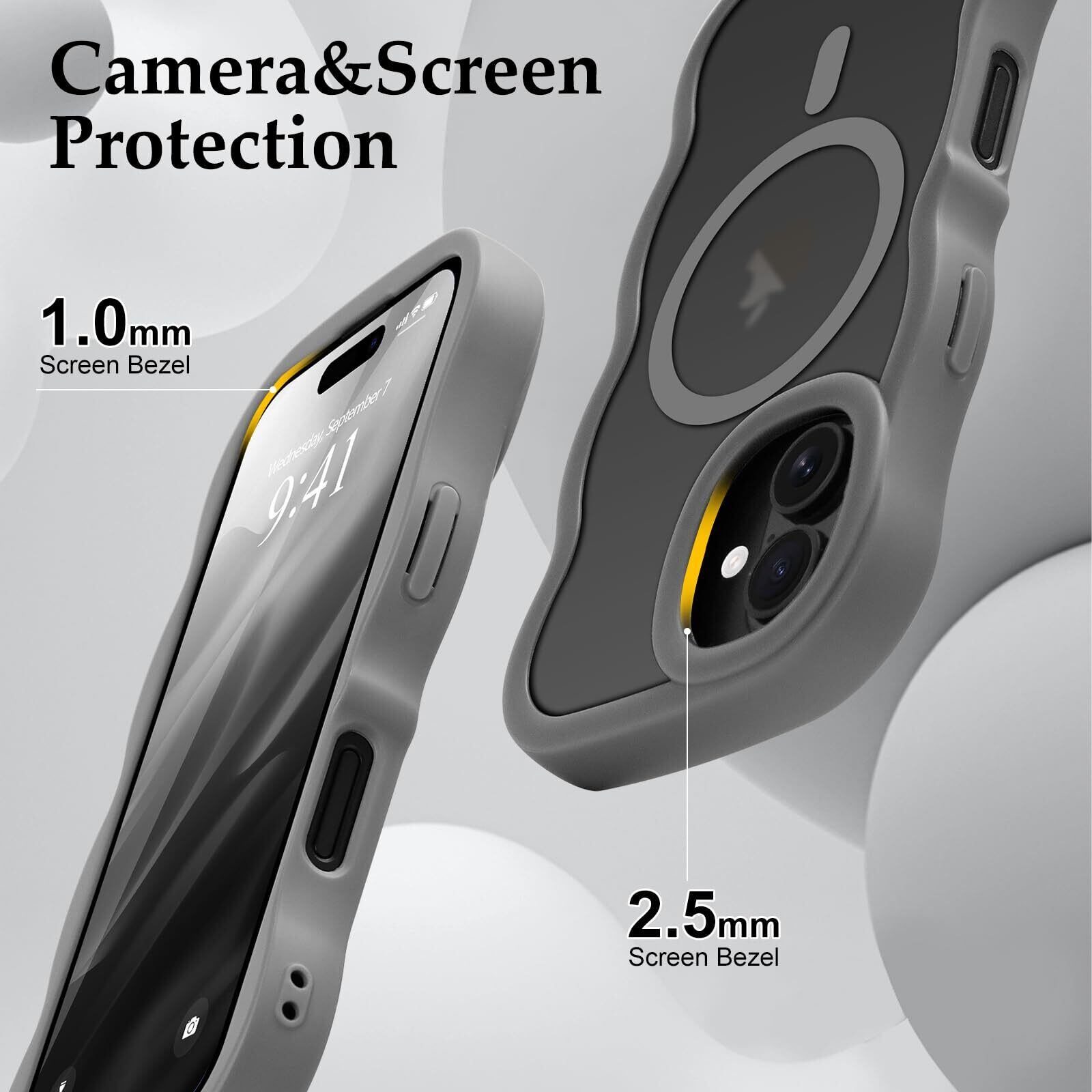 【カーブした波型エッジデザイン】 このiPhone 16用ケースは、ユニークな形状のカーブエッジが特徴で、スマートフォンを握りやすく、手から滑り落ちにくい設計です。