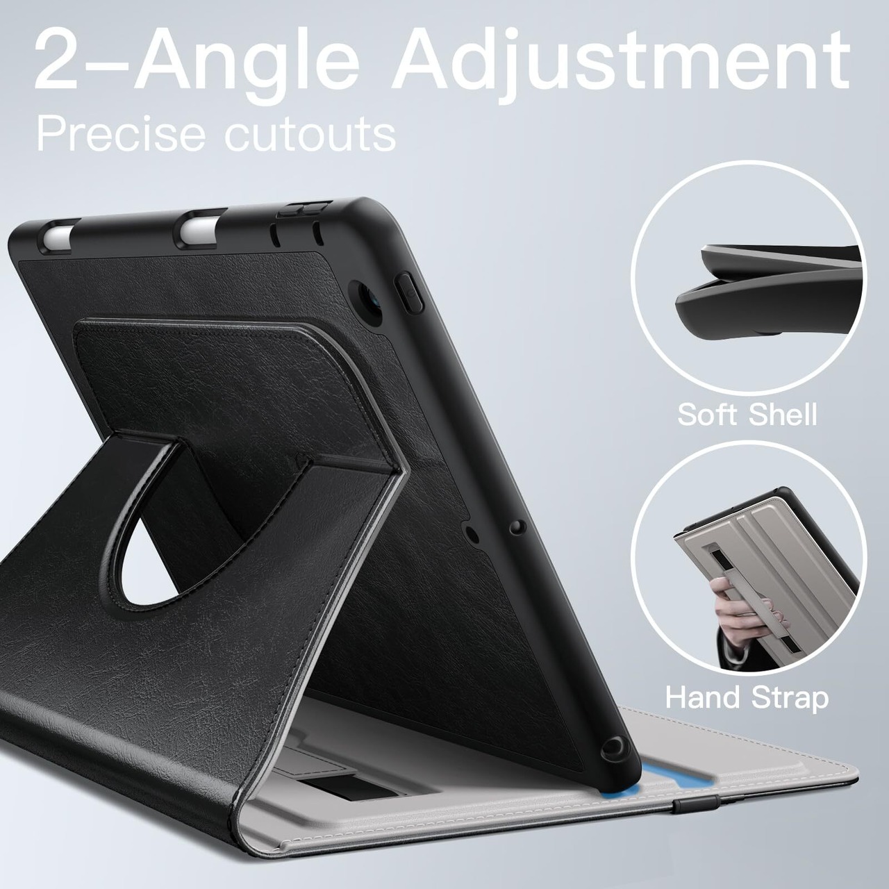 JETech 回転ケース iPad 9/8/7用 (10.2インチ、2021/2020/2019モデル、第9/8/7世代) Pencilホルダー付き 360°回転 PUレザー フォリオ保護カバー (ブラック)