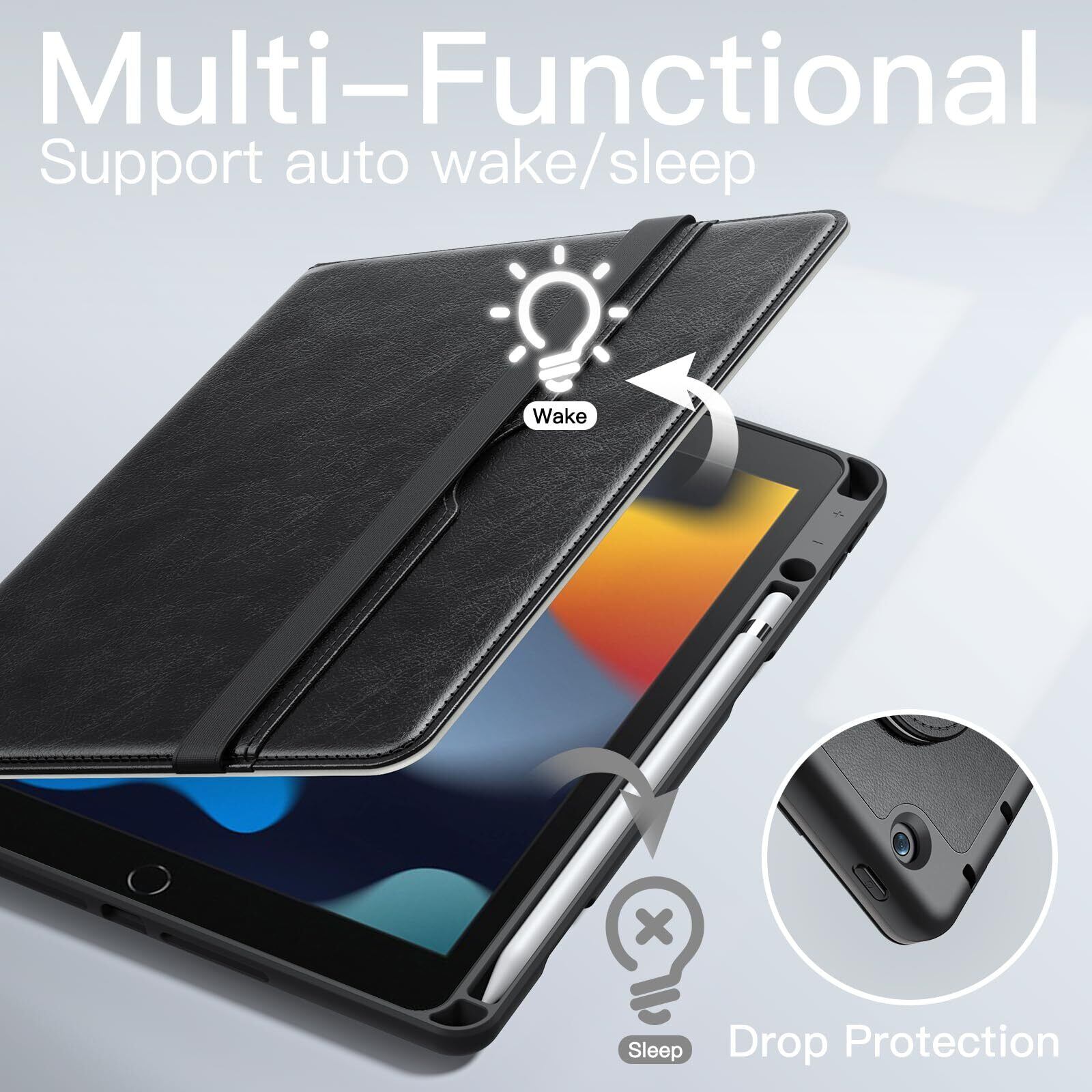 [高品質素材] 外側は高級PUレザー、内側は柔らかいTPUで作られています。iPadを傷や落下からしっかり保護します。耐久性があり、クラシックで快適な手触りです