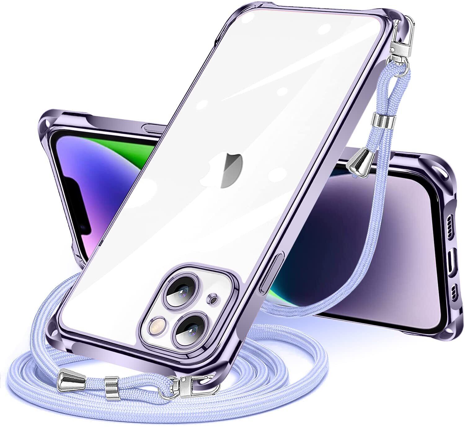iPhone 14 用 ケース クリア ショルダー iPhone14 用 スマホケース アイフォン14 カバー 肩掛け 斜めかけ 縄掛けケース 透明 薄型 軽量 耐衝撃 TPU ストラップ付き 携帯ケース 紐付き 斜めがけ 織りストラップ付き ネックストラップ ショルダー ケース 縦/横 2WAY 長さ調整可能 取り外し可能 落下防止 紛失防止 ワイヤレス充電対応 (パープル)