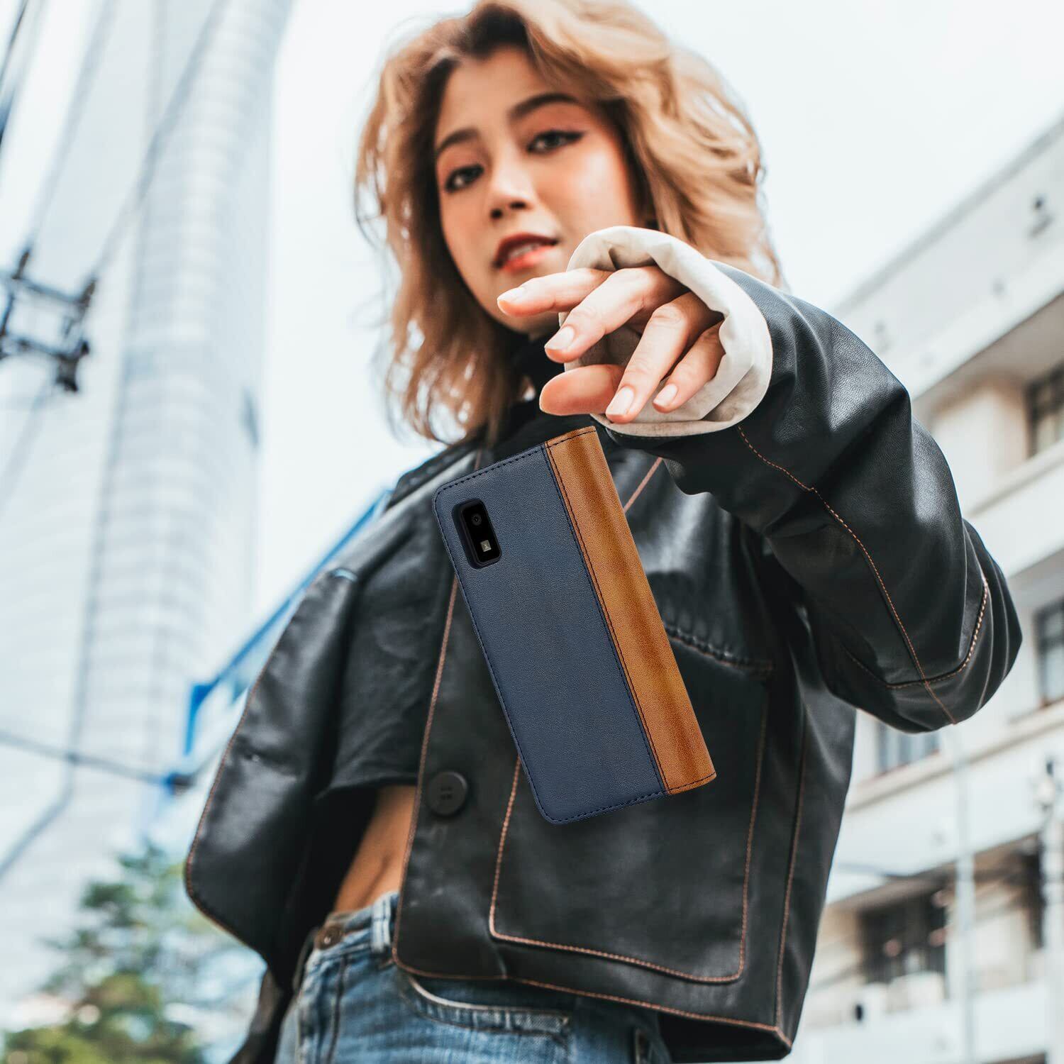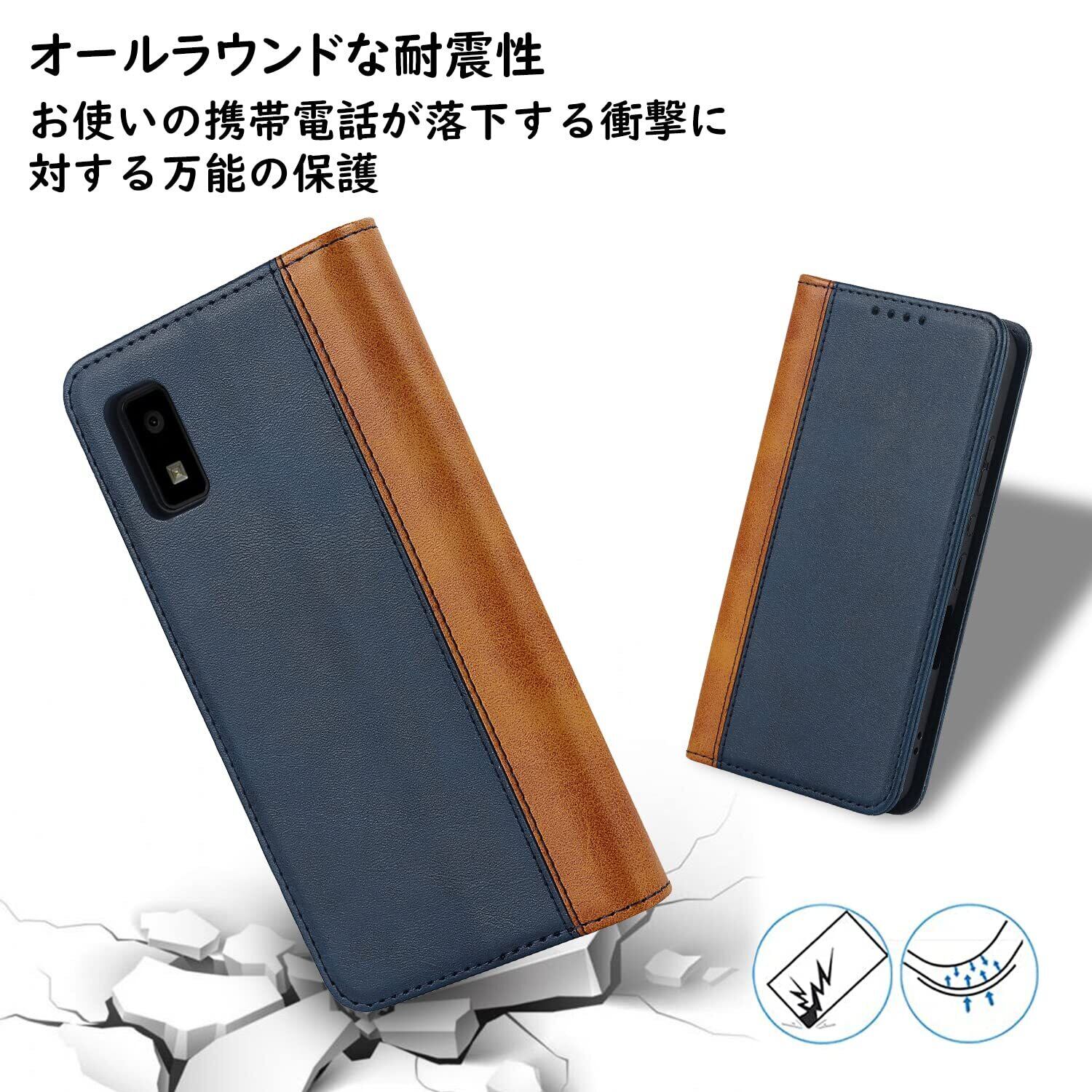 Havaya AQUOS wish2 スマホケース アクオスwish2ケース aquos wish ケース 手帳型 SHG06 SHG08 カバー SH-51C SH-M20 au 耐衝撃 A204SH シャープ Sharp A103SH A104SH docomo 楽天モバイル SoftBank カード収納 スタンド機能 レザー -ブルー+イエロー