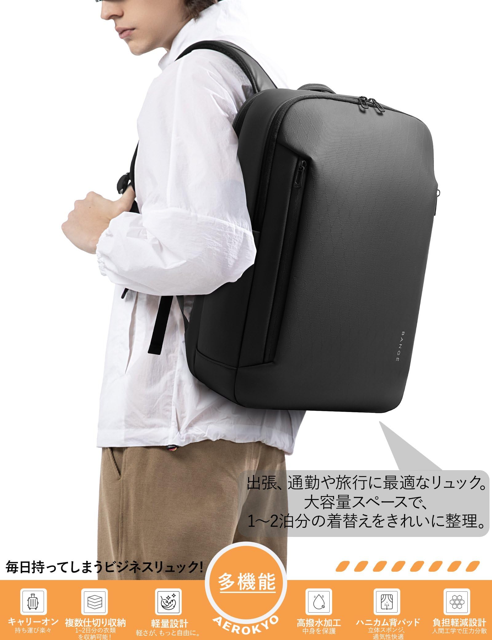 [Aerokyo] ビジネスリュック リュック メンズ 大容量 防水 軽量 バックパック 28L 15.6インチPC 通勤 出張 旅行 A4収納 人気 おしゃれ