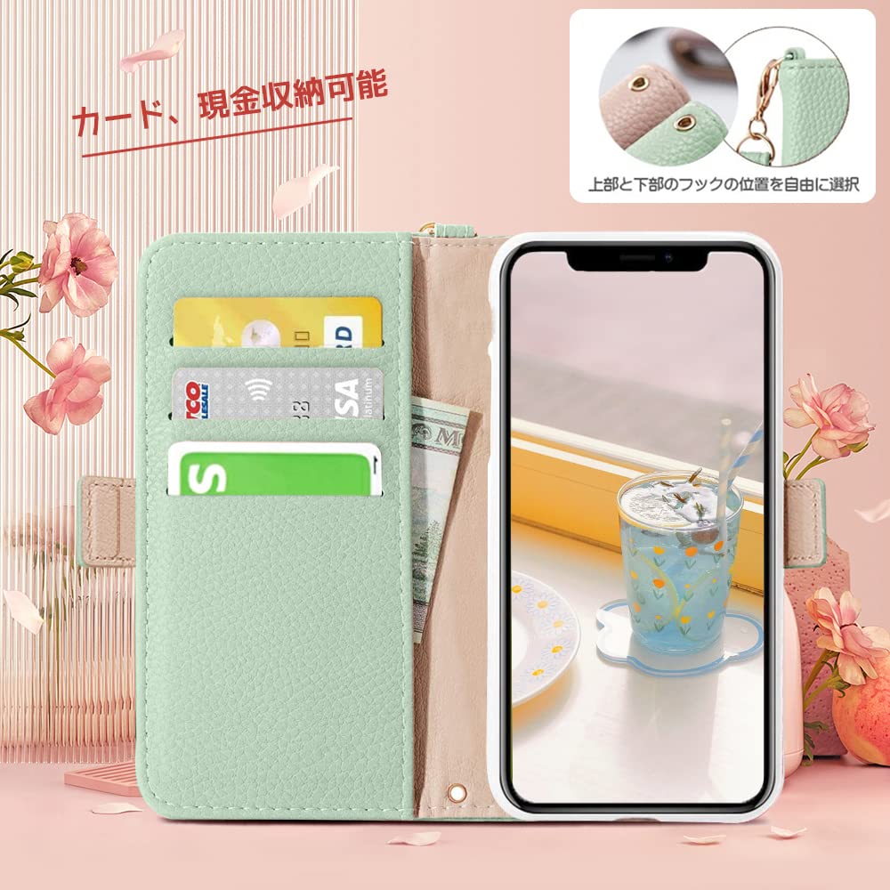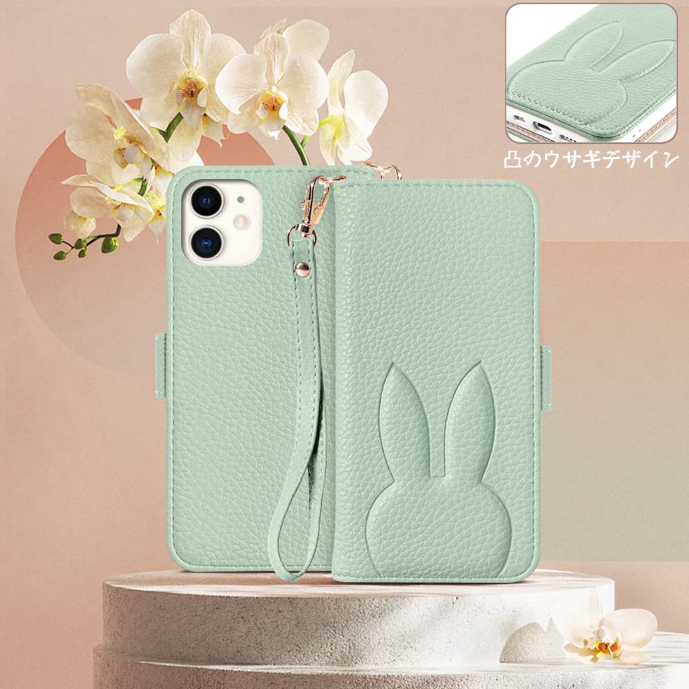 MAGICASE iPhone 12 mini ケース 手帳型 おしゃれ iPhone12 mini 手帳型 ケース人気 女性 可愛い スマホカバー かわいい iphone12ミニ ケース 手帳型 レディース どうぶつ 兎 ストラップ付き アイフォン12mini ケース手帳型 カード収納 アイフォン12ミニ ケース 財布型 高級PUレザー 横置き機能 落ち着いた色 5.4 inch,グリーン