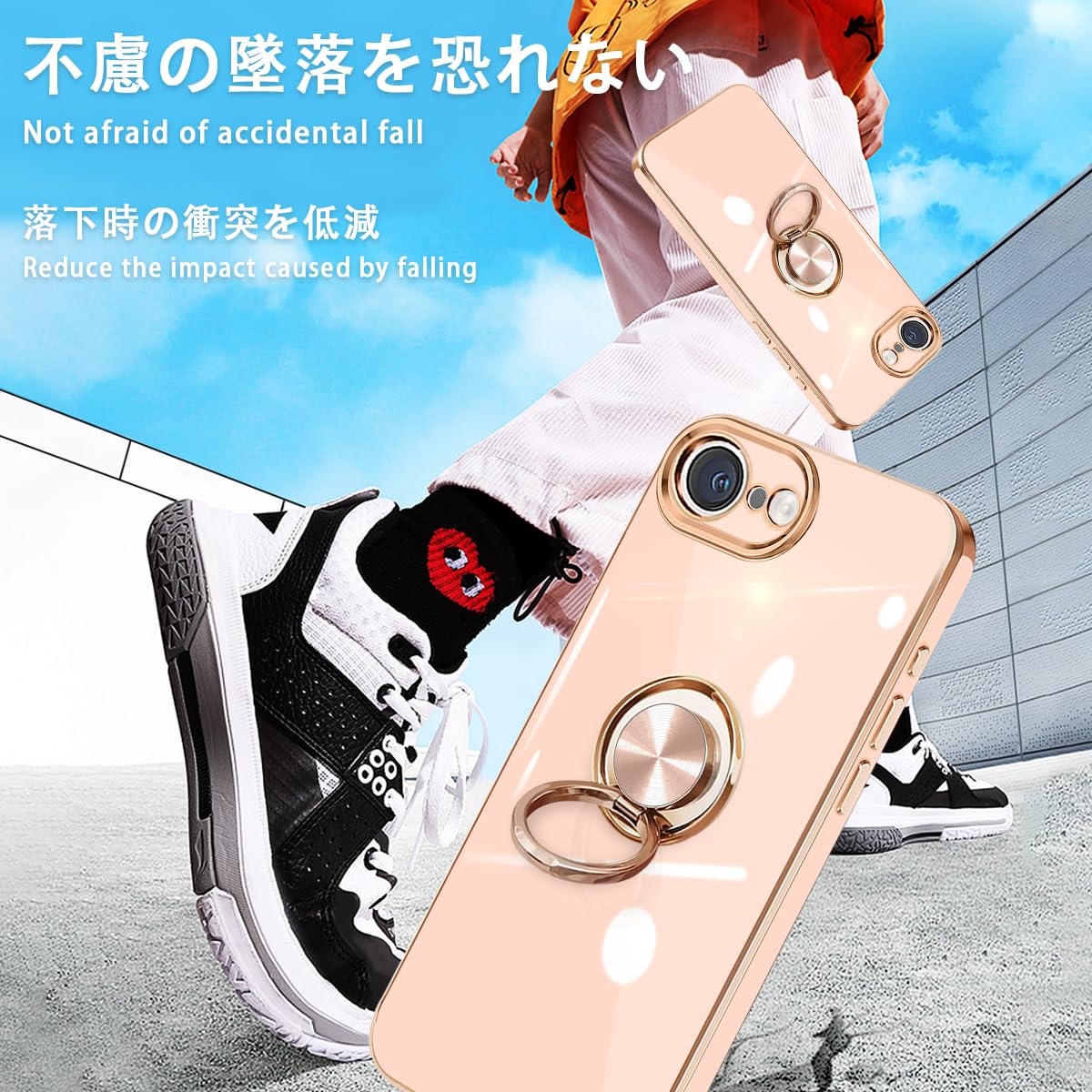 【リング機能&スタンド機能】360°回転・調整リングホルダーです。リングに指を1本通すことで、片手でスマホを操作でき、落下を防止することができます。リングを立ててスタンドにしたりすることも可能です、持たず動画鑑賞などを楽しむことができます。iPhone 16e ケース