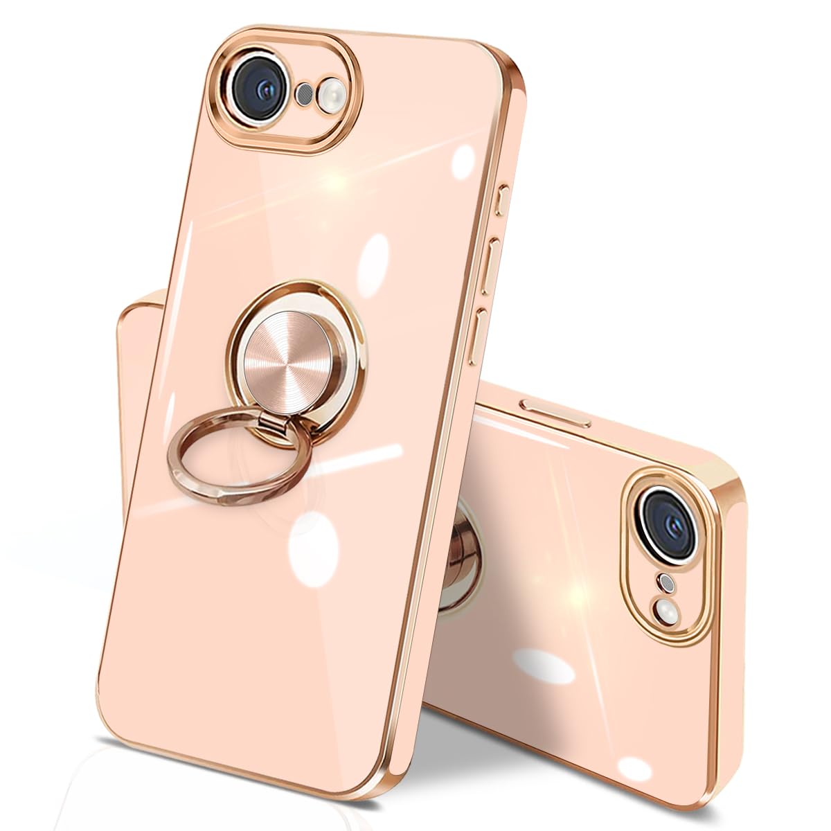 danliangqifei iPhone 16e ケース リング 耐衝撃 360°回転 スタンド機能 車載ホルダー対応 カバー アイフォン16eスマホケース 携帯 保護カバー レンズ保護 ストラップホール付き 6.1インチ(ピンク)