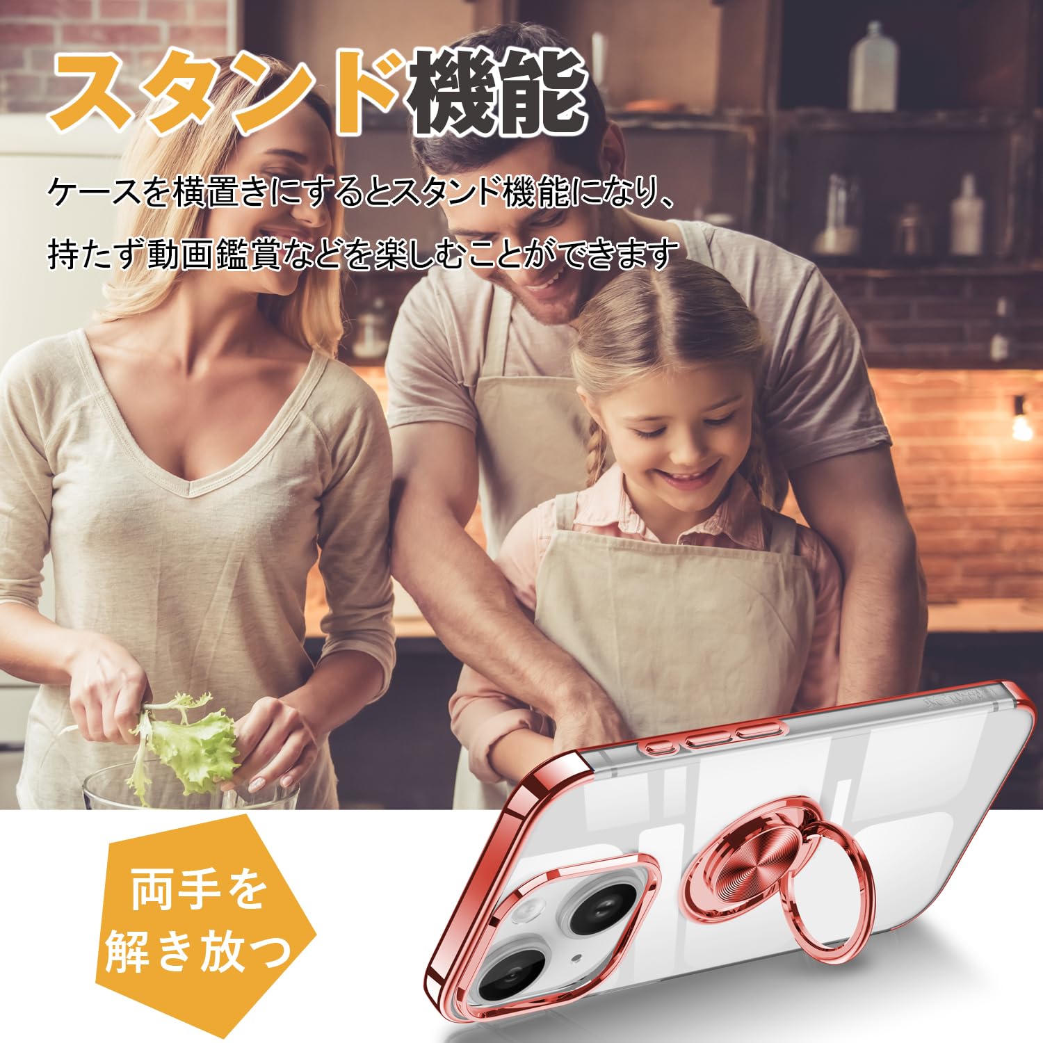 【リング付き機能】ケースを横置きにするとスタンド機能になり、持たず動画鑑賞などを楽しむことができます。リングは360度回転可能、180角度調節可能。一指着る式で、指がリングに通り抜け、片手で携帯を操作でき、落下防止します。