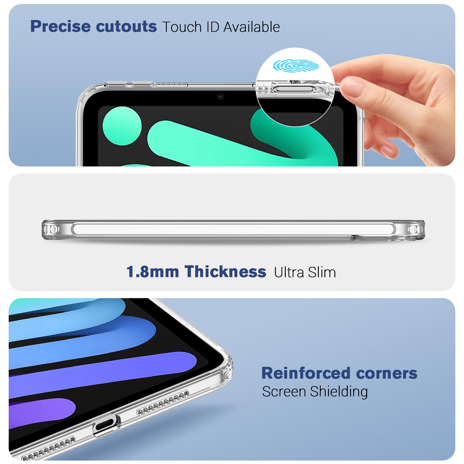 ProCase iPad Mini A17 Pro 第7世代 2024 Mini6 ケース 2021 8.3インチ クリアケース 透明 保護カバー 軽量 スリム 耐衝撃 適用機種:iPad Mini A17 Pro 第7世代 2024(A2993 / A2995 / A2996)、Mini 第6世代 2021(A2567 / A2568 / A2569) - クリア