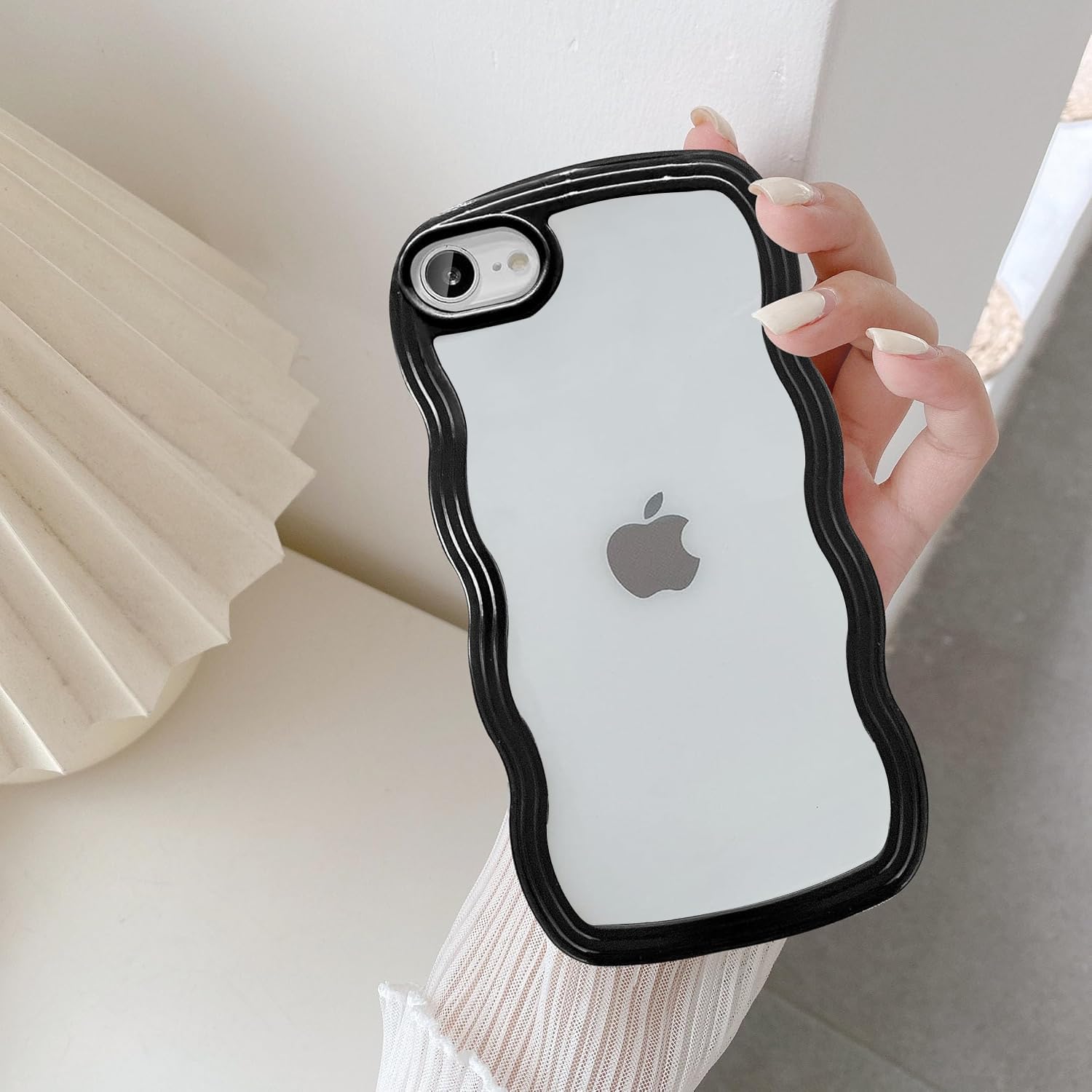 iphone SE3 ケース 韓国 おしゃれ シンプル 波状エッジ 透明 2in1 あいふぉん7/8/SE/SE2/SE3 創意 個性 超軽量 薄型 スマホケース 指紋防止 擦り傷防止 全面保護 耐衝撃 衝撃吸収 携帯カバー 人気iphoneケース ブラック