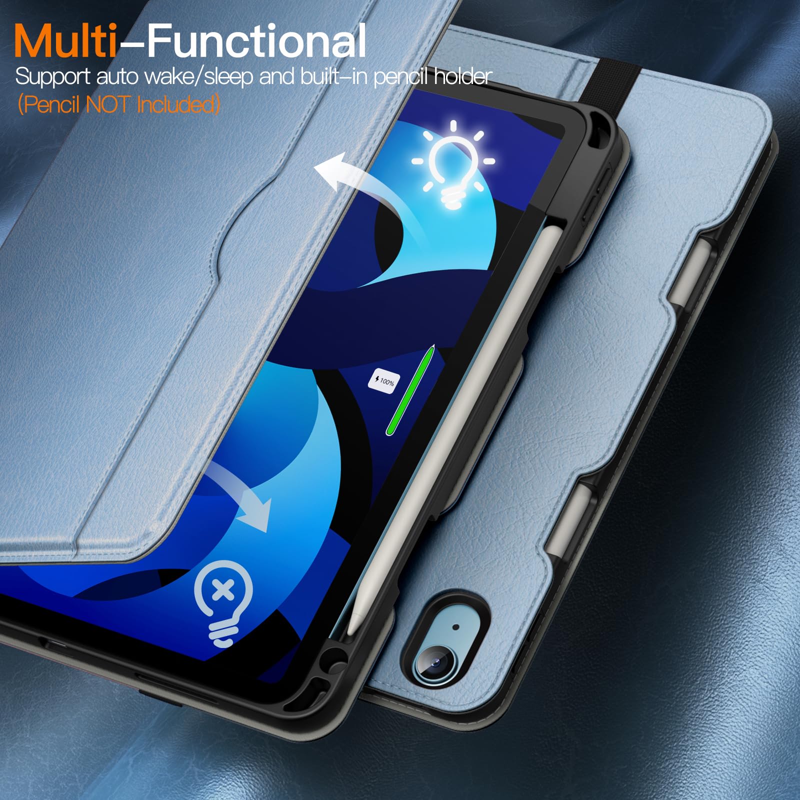 【新春セール】JETech iPad Air 11 インチ M3/M2 (2025/2024)、iPad Air 5/4 ケース (10.9 インチ、2022/2020モデル、 第5/4世代用)、PU レザー フォリオ タブレット保護カバー Pencil収納可能 & ポケット、マルチアングル表示 (空色)