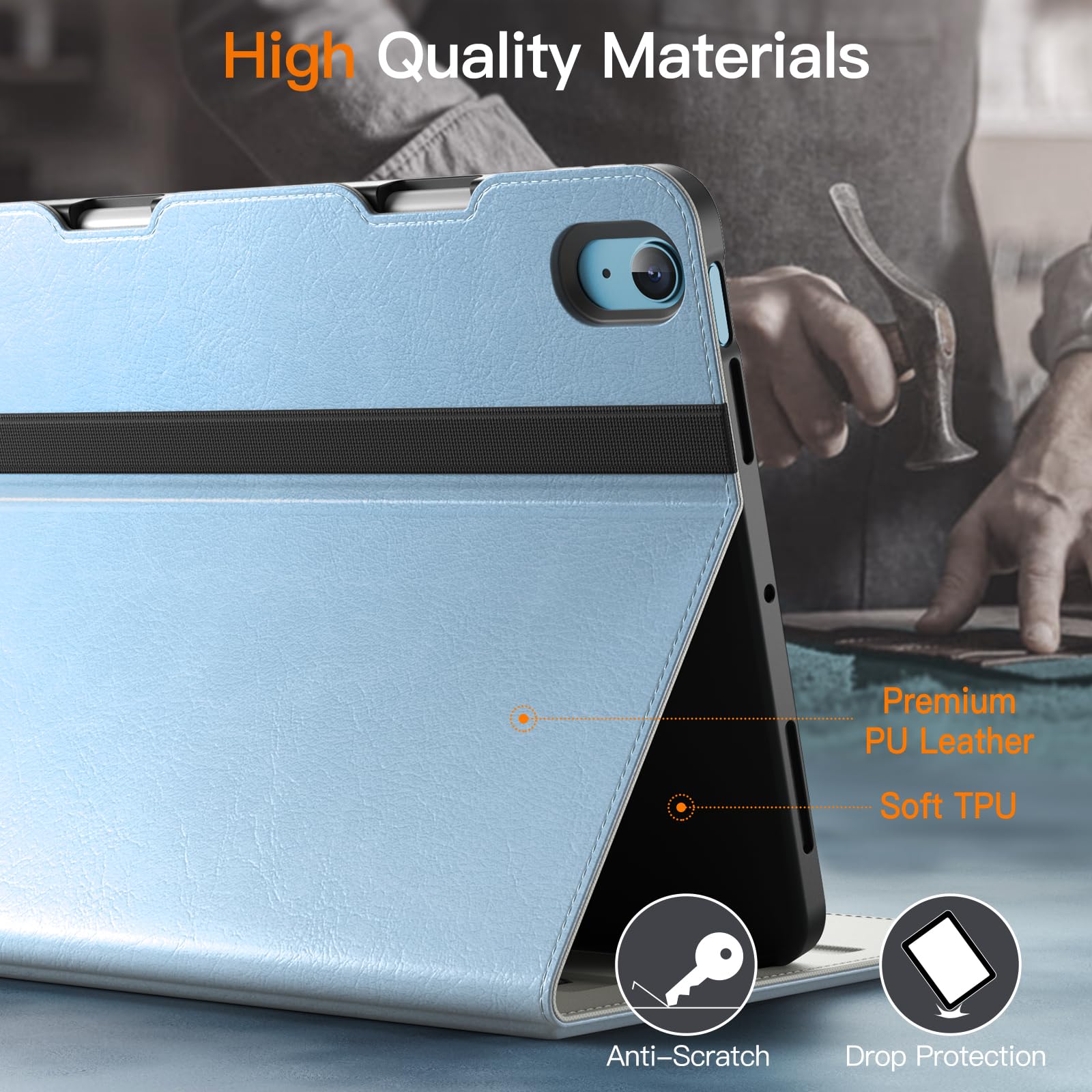 [高品質の素材] プレミアムPUレザーの外装と柔らかいTPUのインナーバックで作られています。 iPadを傷や落下からしっかりと保護します。耐久性があり、クラシックで快適な手触り