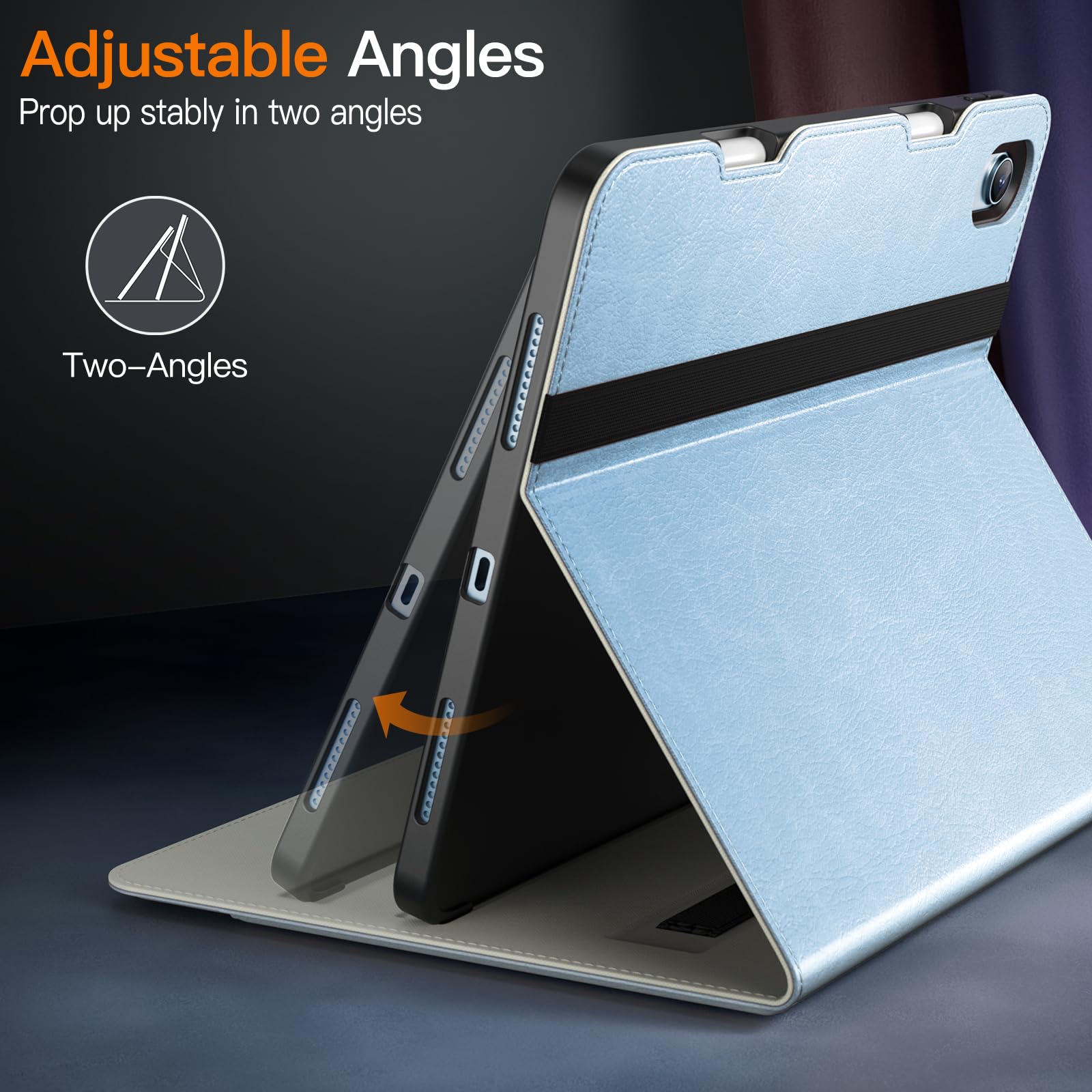 [使いやすい] このレザーケースは、iPad を複数の視野角に調整できるようにします。また、正確なカットアウトにより、すべての機能とボタンを簡単に制御できます