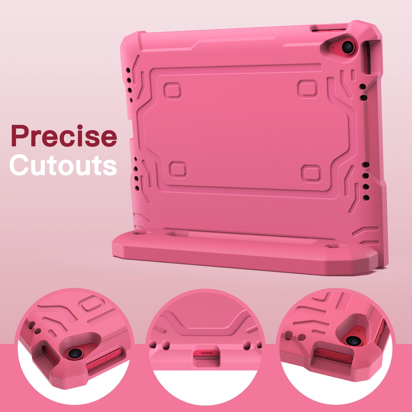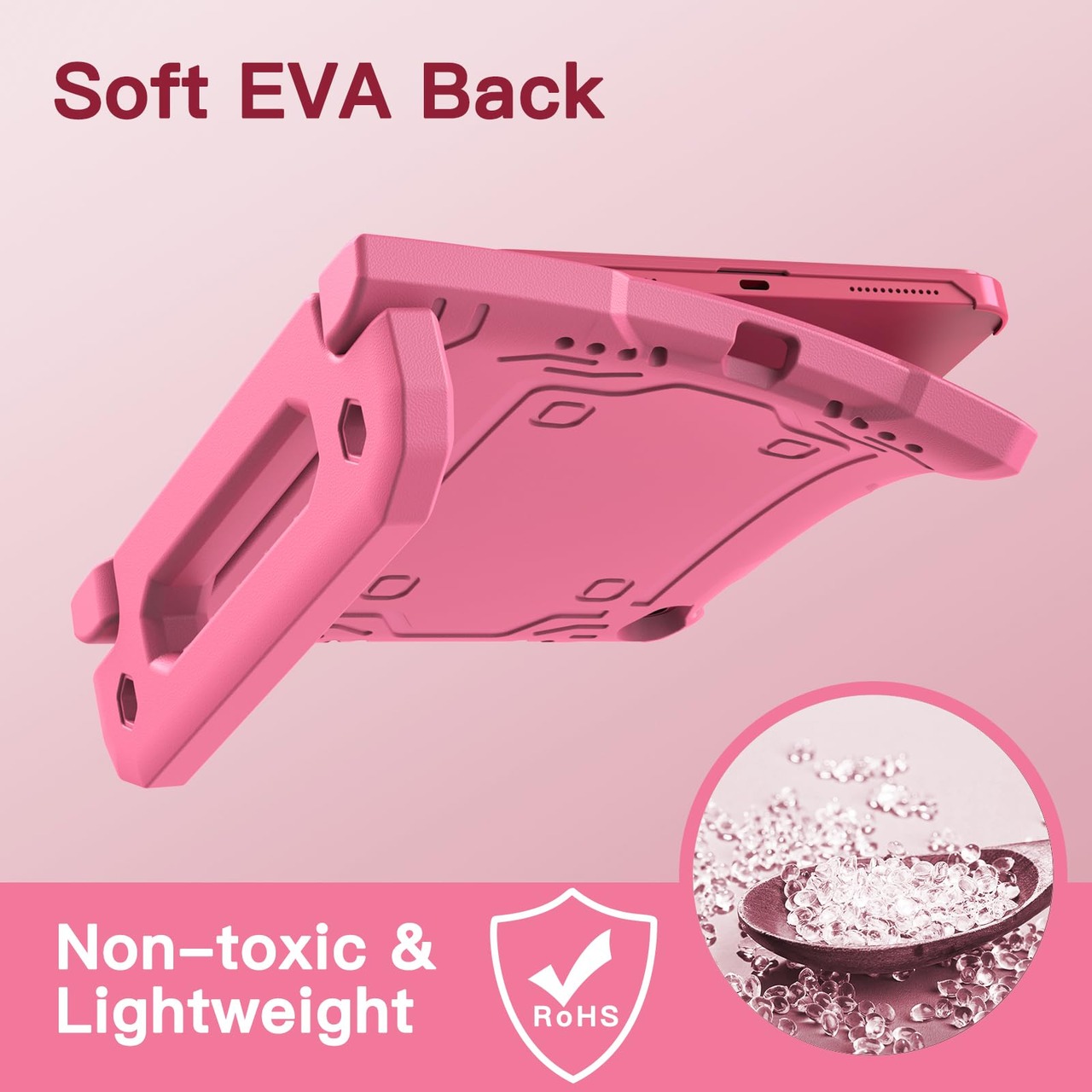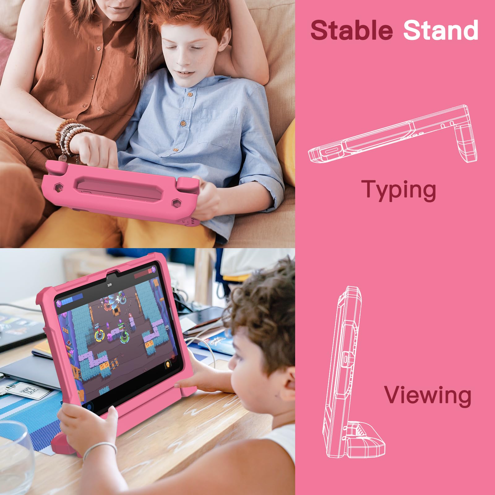 [多目的スタンド] 滑り止めの風合いで子供に優しいハンドルのデザインです。持ち�びやすいし、両手を解放して自由に視聴を体験するあるいは快適なタイピングのために折りたたんで、頑丈なスタンドに変えるのも易しいことです