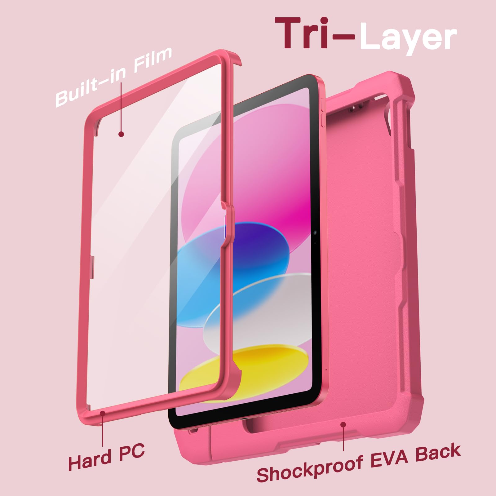 【在庫処分】JETech 子供用 iPad(A16)ケース 第11/10世代(2025/2022モデル)用液晶保護フィルム付き 耐衝撃 フルボディハンドルスタンド タブレット保護カバー (ピンク)