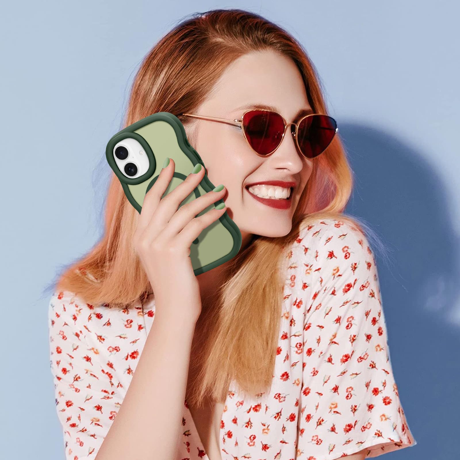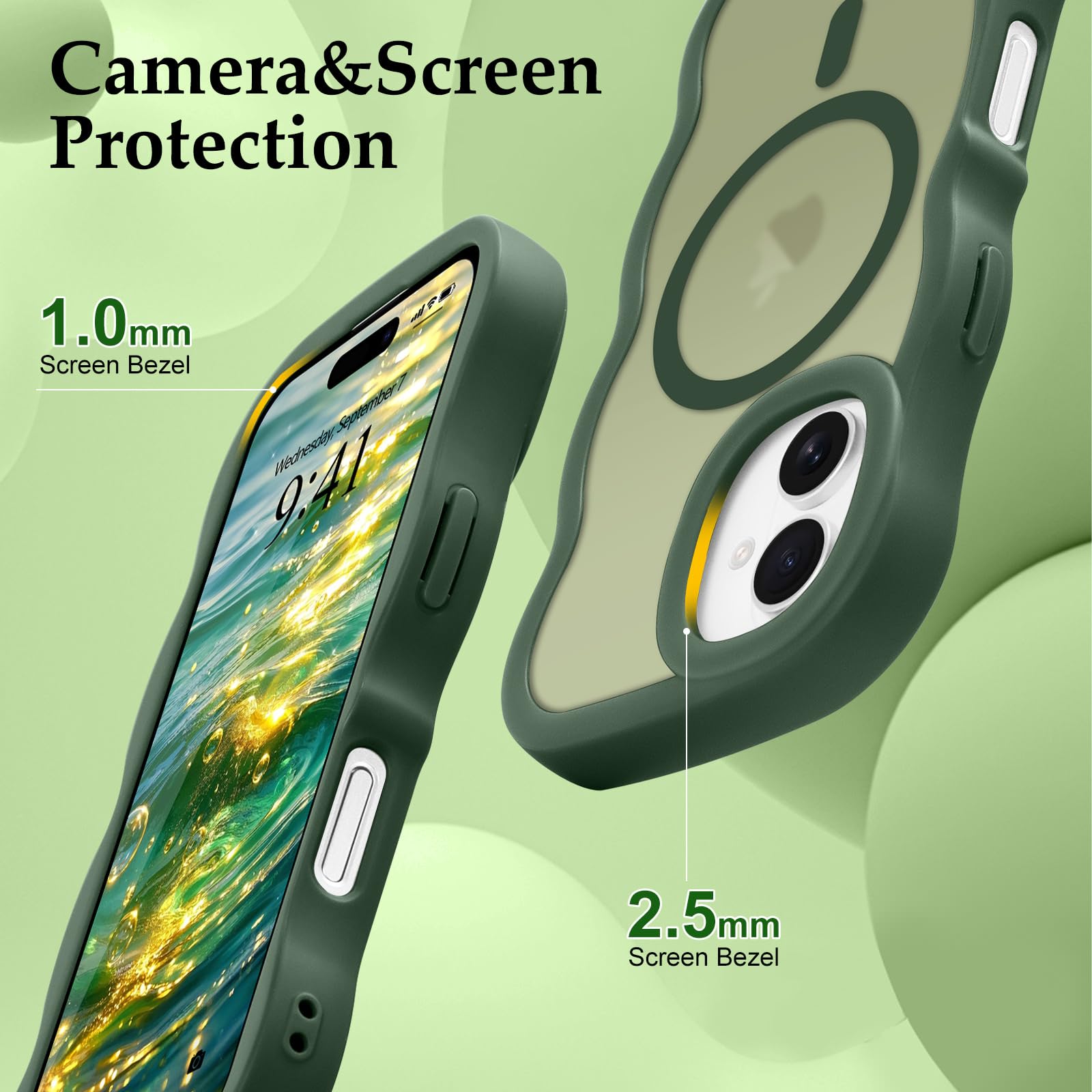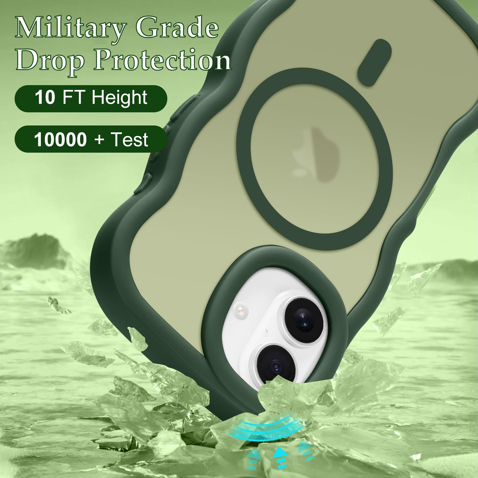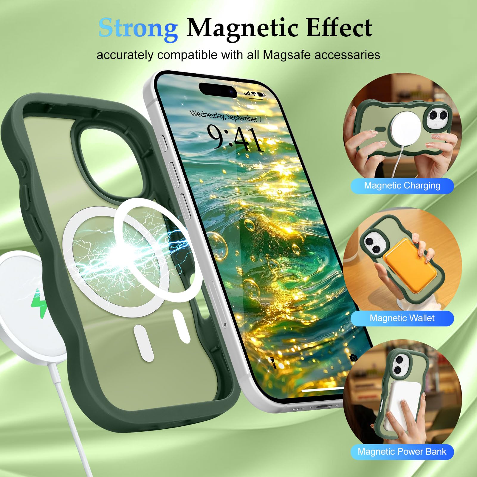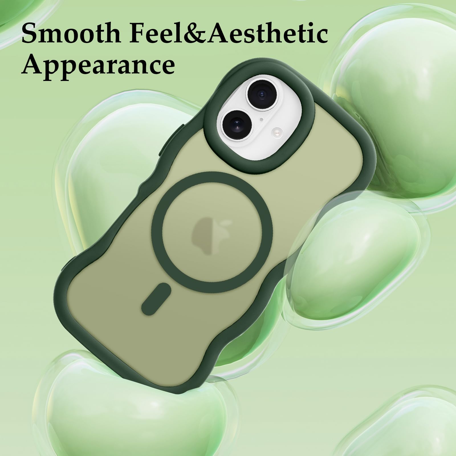 Pepmune iPhone 16 ケース MagSafe対応 ウェーブ 半透明 滑り止め おしゃれ 可愛い 韓国 耐衝撃 指紋防止 ワイヤレス充電 スマホケース ストラップホール付き(ダークグリーン)