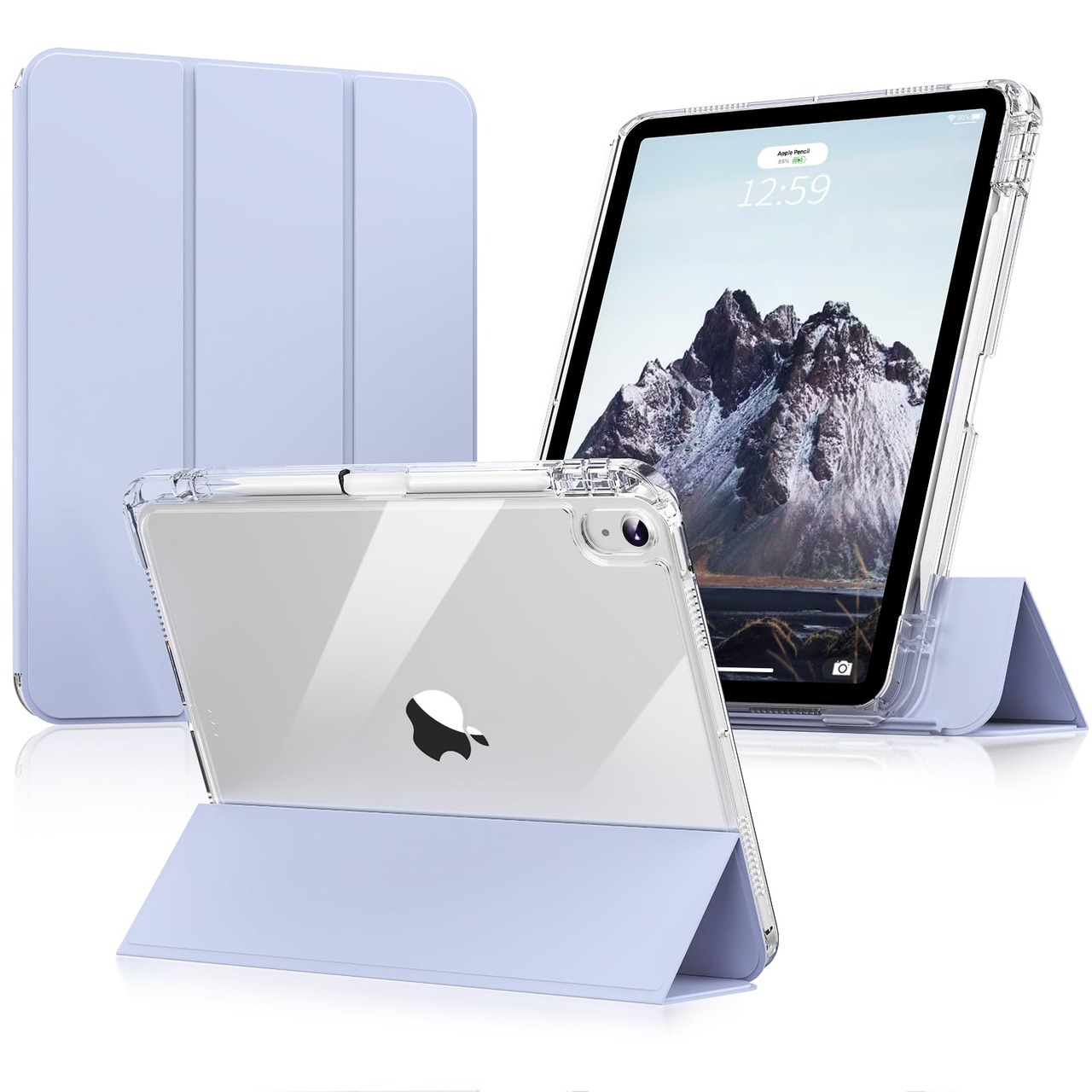 Aoub iPad 11世代 10世代 ケース A16 11インチ 10.9インチ iPad 分離式 ケース 第10世代 (2025/2022)対応 アクリル 透明バックカバー Pencil 収納可能 PU合成レザー 三つ折スタンド オートスリープ機能 軽量 薄型 傷つけ防止 ラベンダー