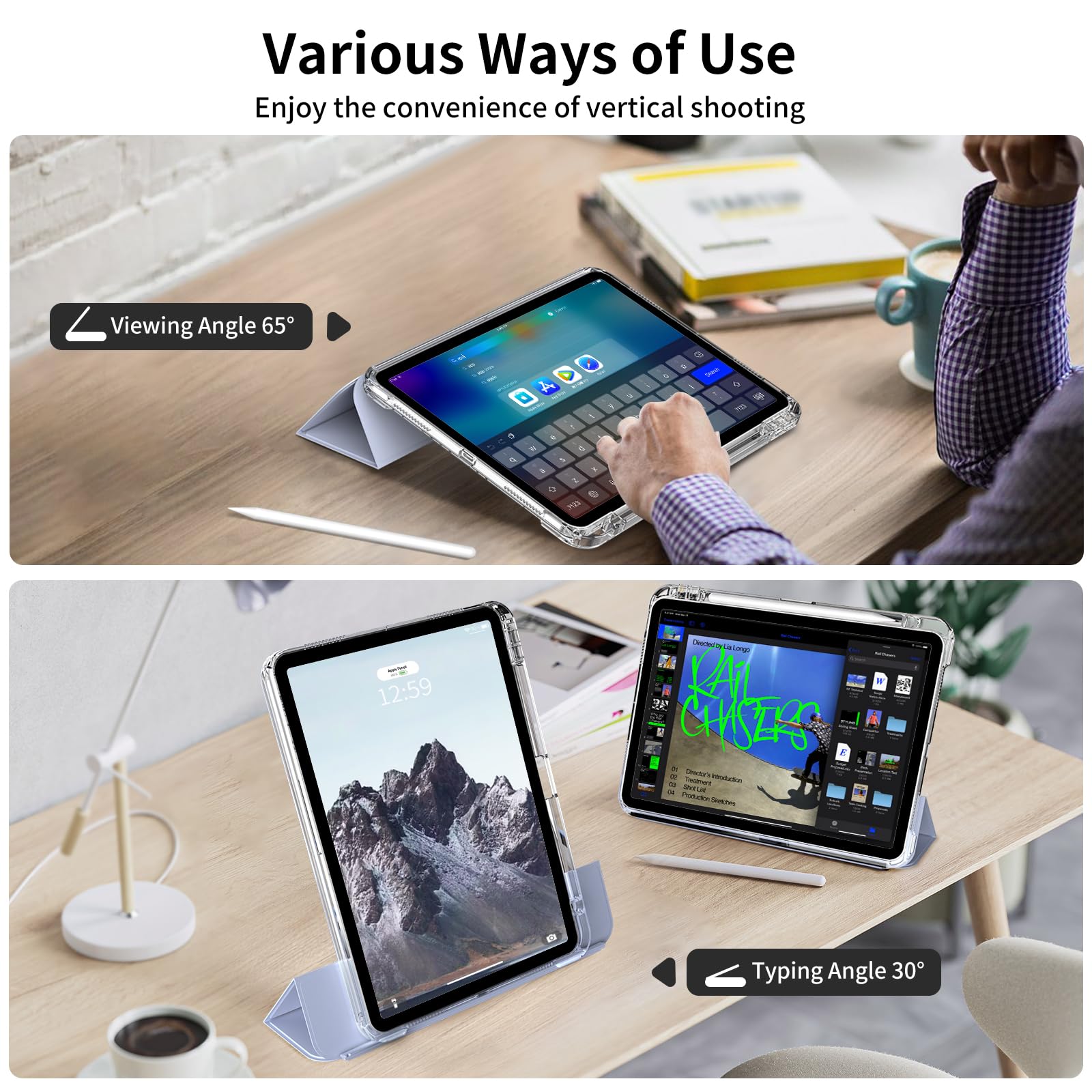 【取り外し可能なカバー&Pencil収納】 取り外し可能なシェルは、ハンドヘルドやゲームのニーズに合わせて分解して個別に使用できます。三つ折スタンドタイプなので、横向きに立てかけて、動画視聴、読書、WEBなどに便利です。便利なペンホルダーが付き、ペンシル紛失せずご安心利用頂けます。