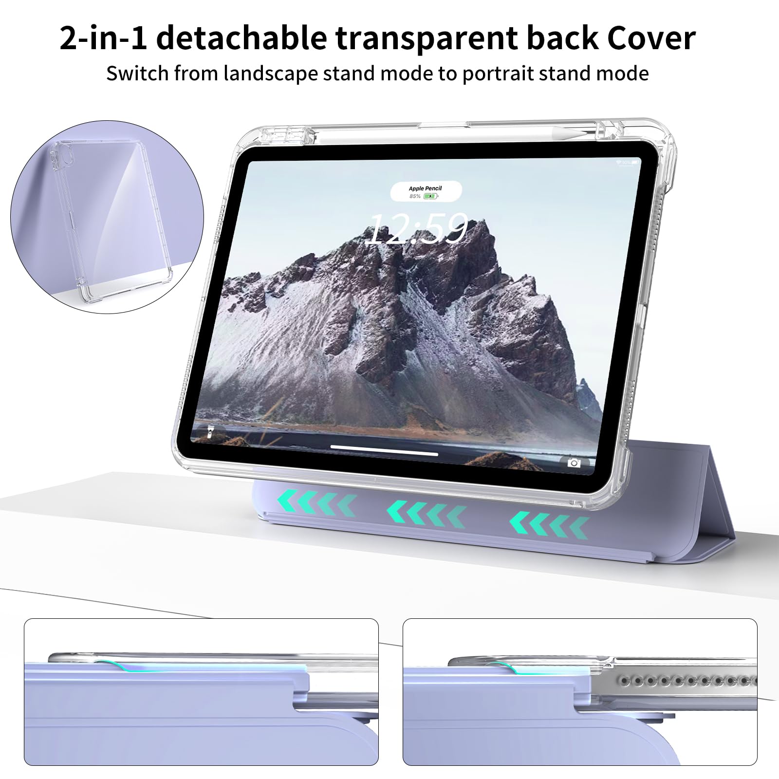 【2022最新】Aoub iPad 11世代 10世代 ケース A16 11インチ 10.9インチ iPad 分離式 ケース 第10世代 (2025/2022)対応 アクリル 透明バックカバー Pencil 収納可能 PU合成レザー 三つ折スタンド オートスリープ機能 軽量 薄型 傷つけ防止 ラベンダー