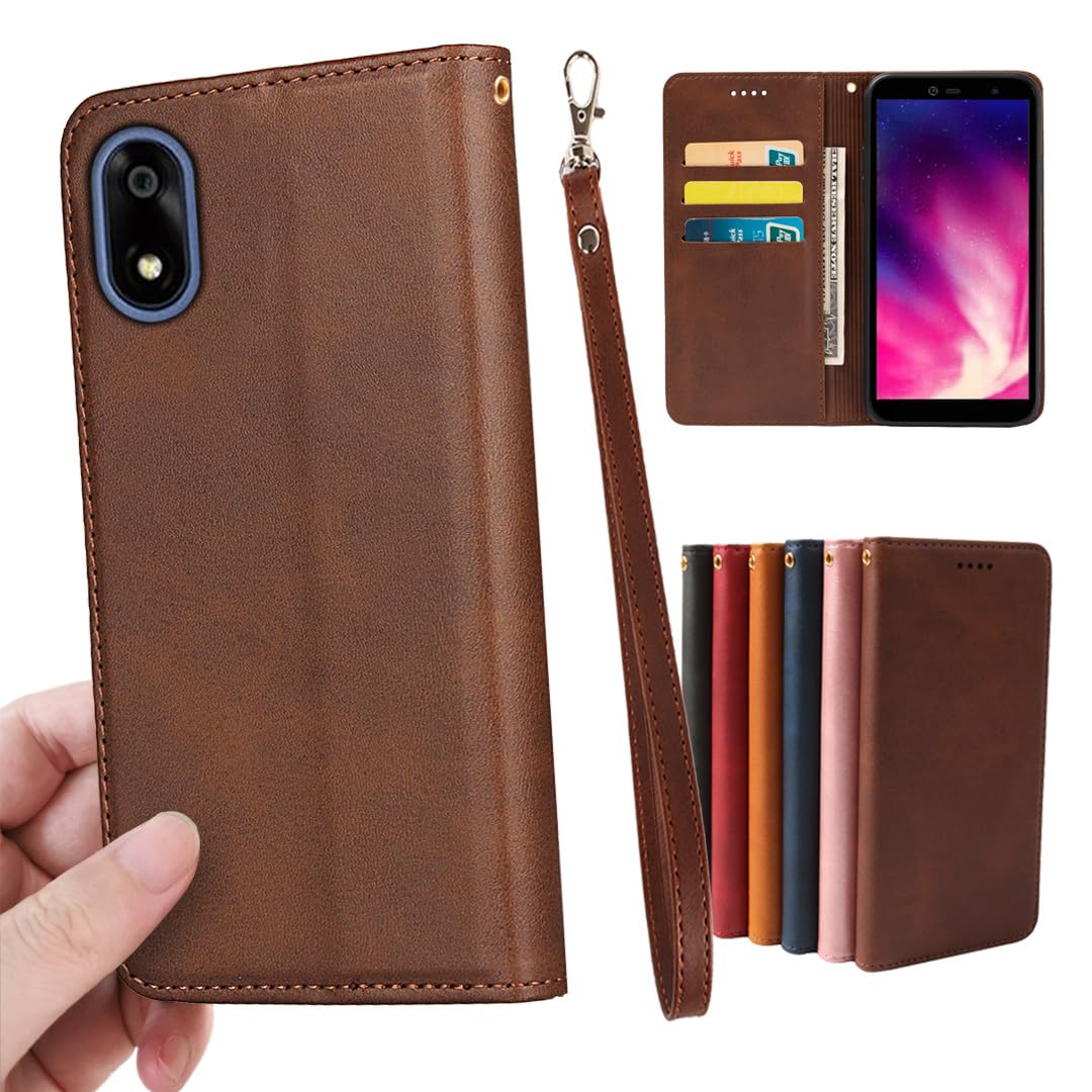 GOKIGIOD 適用 ZTE かんたんスマホ4 A402ZT ケース 手帳型 PUレザー ストラップ 同梱 カード収納 スタンド機能 耐衝撃 かんたんスマホ4 スマホケース 手帳 A402ZT case カバー 財布型 内蔵マグネット 弱磁 ストラップホール 携帯カバー レトロ ダークブラウン