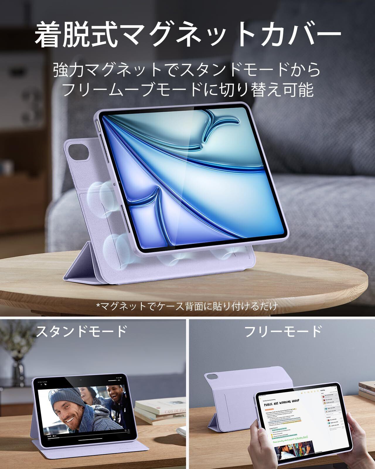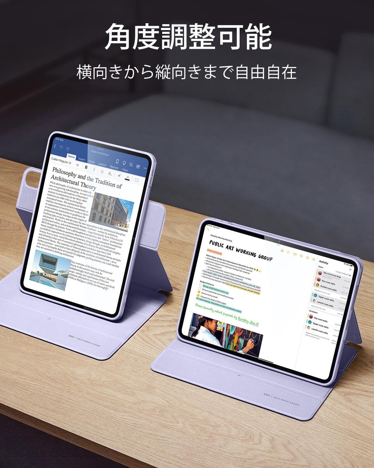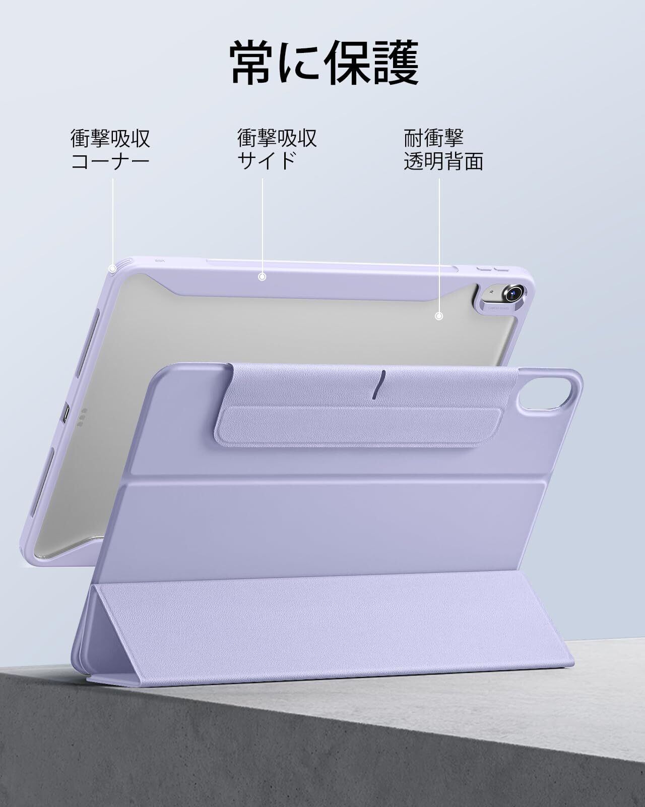 【特価商品】ESR iPad Air 11インチ ケース (M3/M2、2025/2024) iPad Air 第5/4世代 ケース(2022/2020)専用 Pencilホルダー付き 取り外し可能マグネットカバー 縦置き/横置きスタンド Pencil Pro/USB-C完全対応 Rebound 360シリーズ バイオレット・パープル
