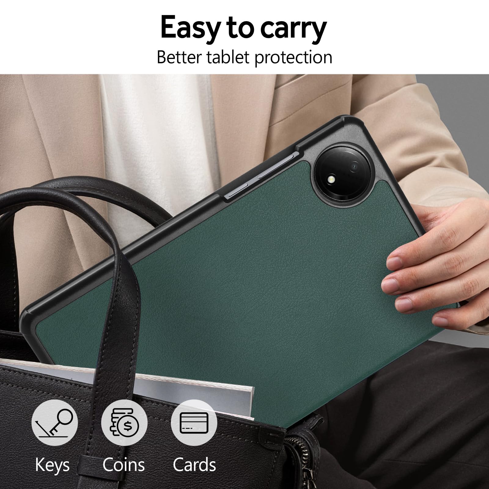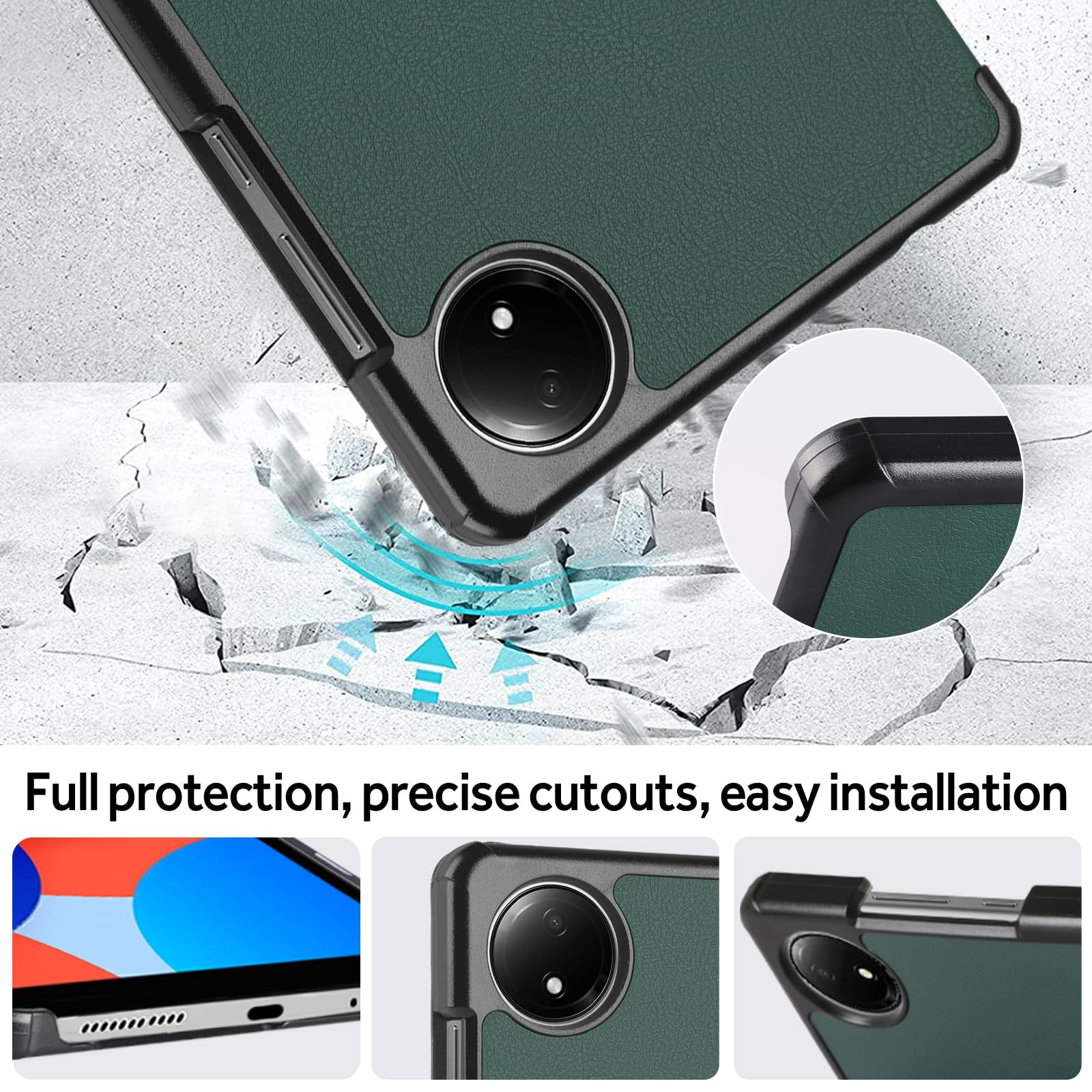 Hianjoo Xiaomi Redmi Pad SE 4G 8.7インチ 対応 ケース タブレットケース Xiaomi Redmi Pad SE 8.7インチ 対応 カバー スタンド機能付き オートスリープ機能 全面保護ケース 耐衝撃 擦り傷防止 - ダークグリーン