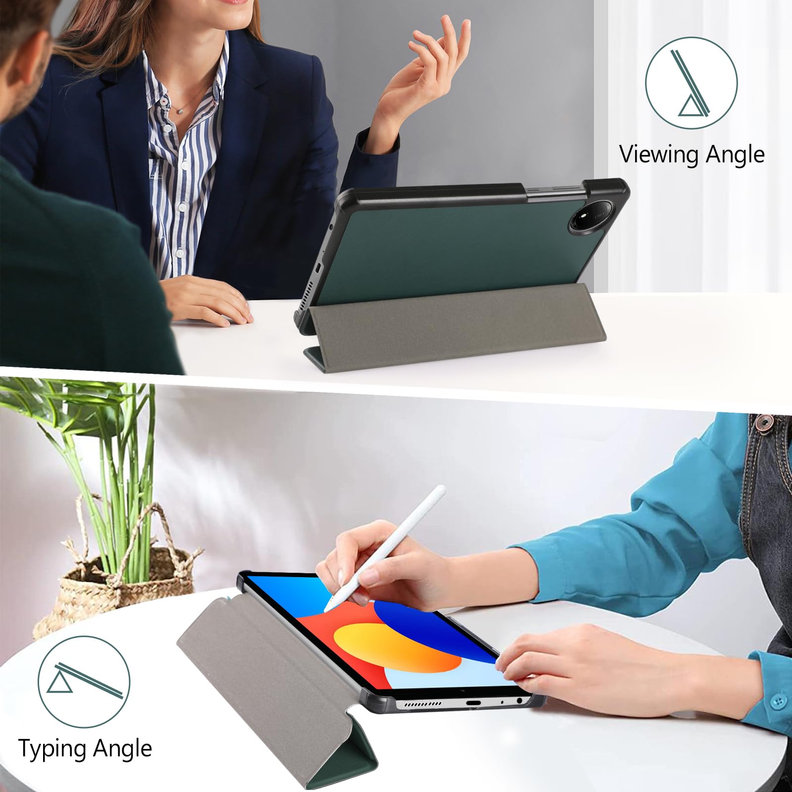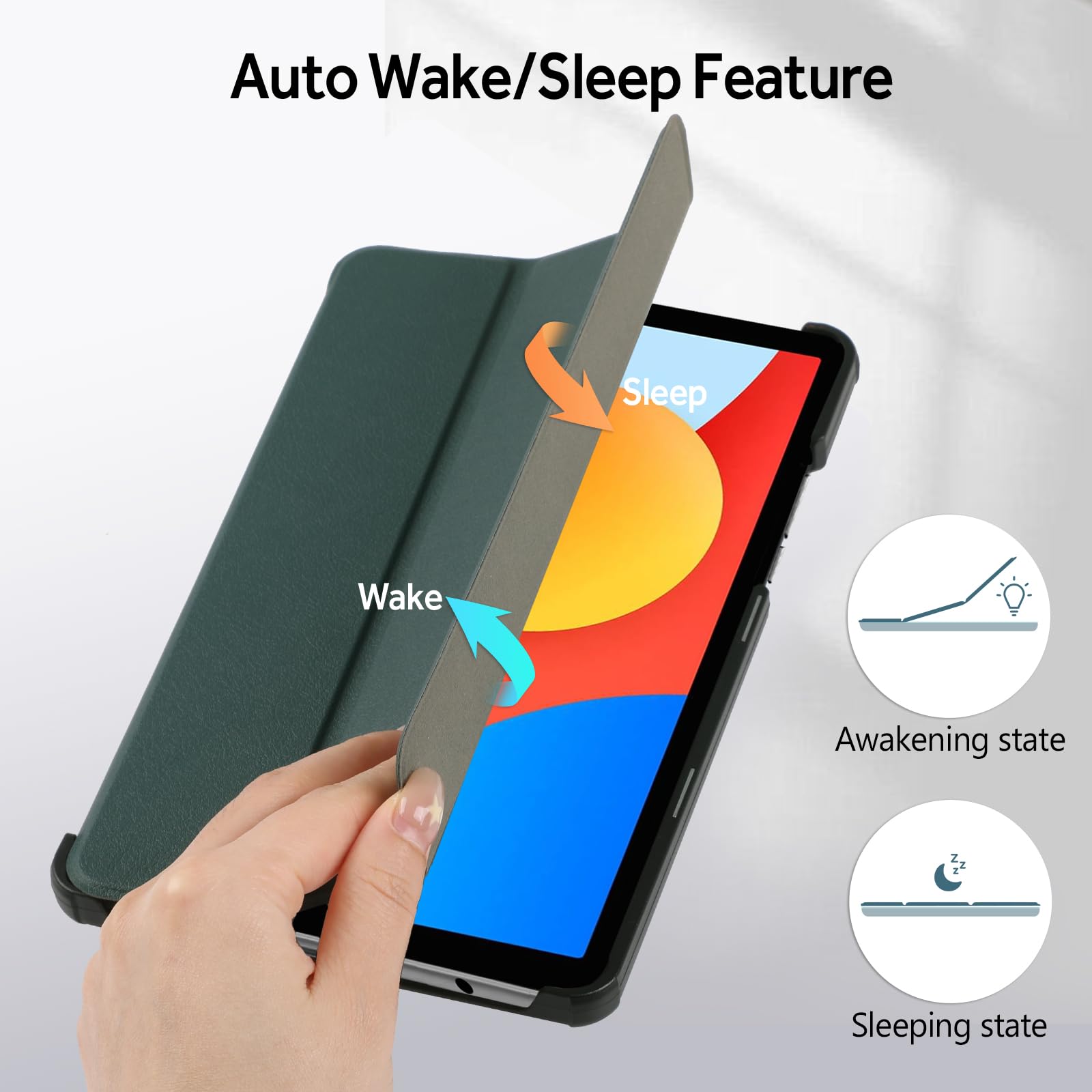 【特価セール】Hianjoo Xiaomi Redmi Pad SE 4G 8.7インチ 対応 ケース タブレットケース Xiaomi Redmi Pad SE 8.7インチ 対応 カバー スタンド機能付き オートスリープ機能 全面保護ケース 耐衝撃 擦り傷防止 - ダークグリーン