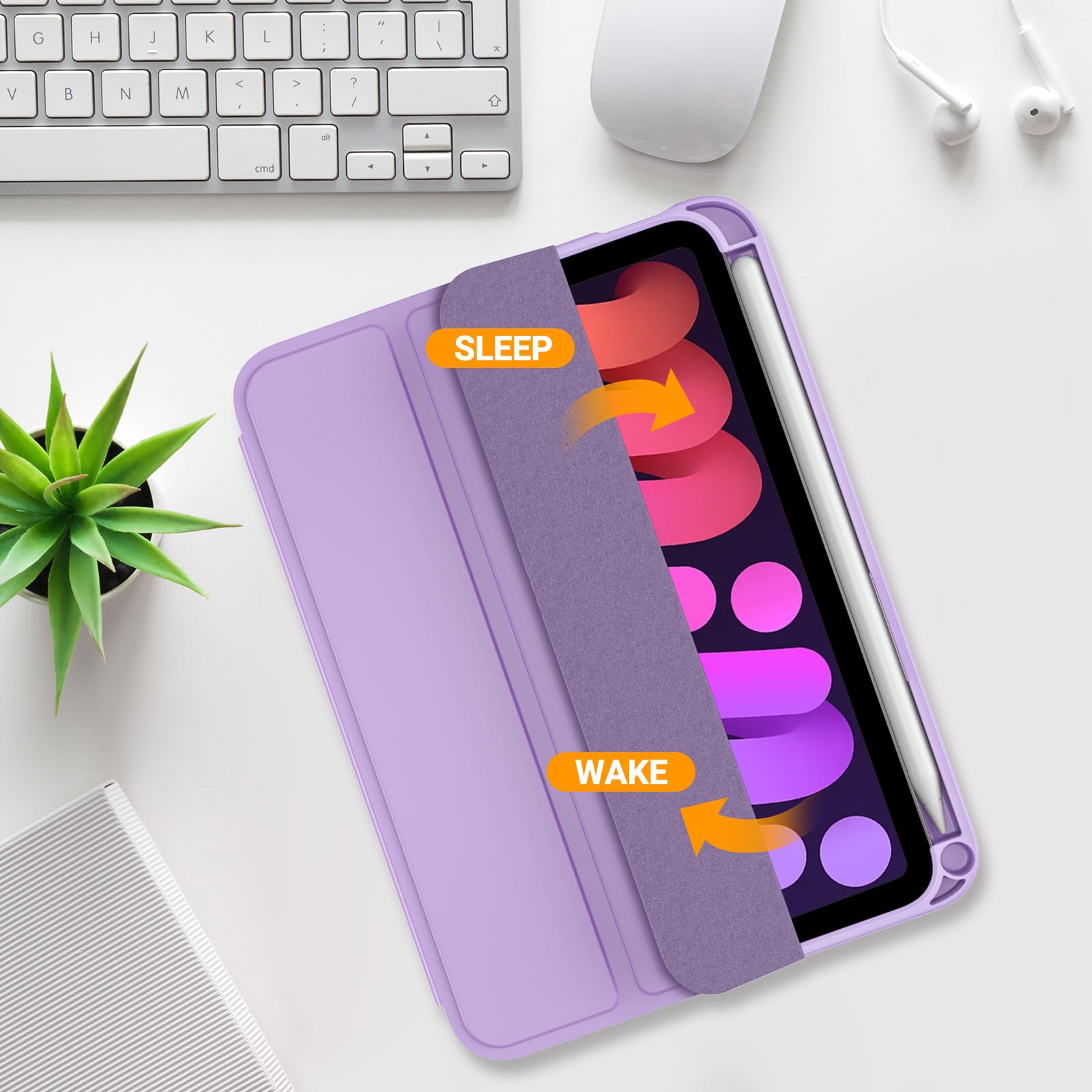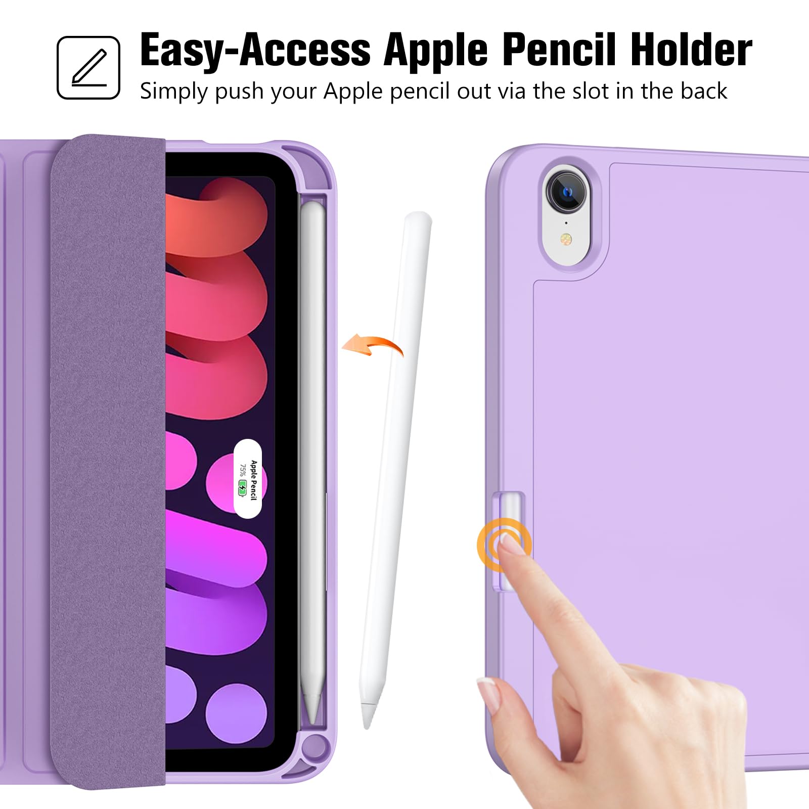 ProCase iPad Mini A17 Pro 第7世代 (2024発売) Mini6 第6世代 (2021発売) ケース 8.3インチ ペンホルダー付き オートスリープ/ウェイク機能 耐衝撃 三つ折りスタンド 適用機種:iPad Mini A17 Pro 第7世代 2024、iPad Mini 6世代 2021 - パープル