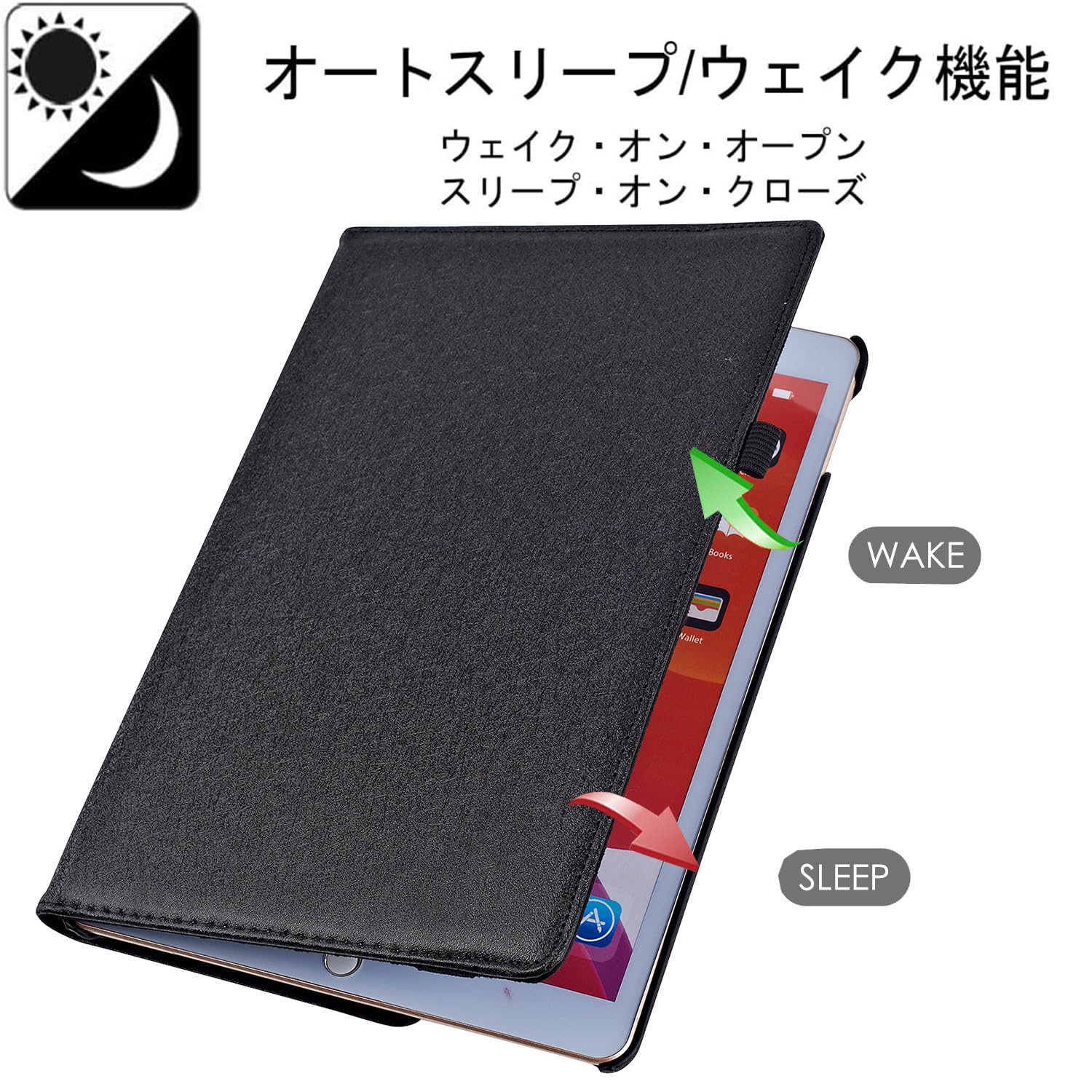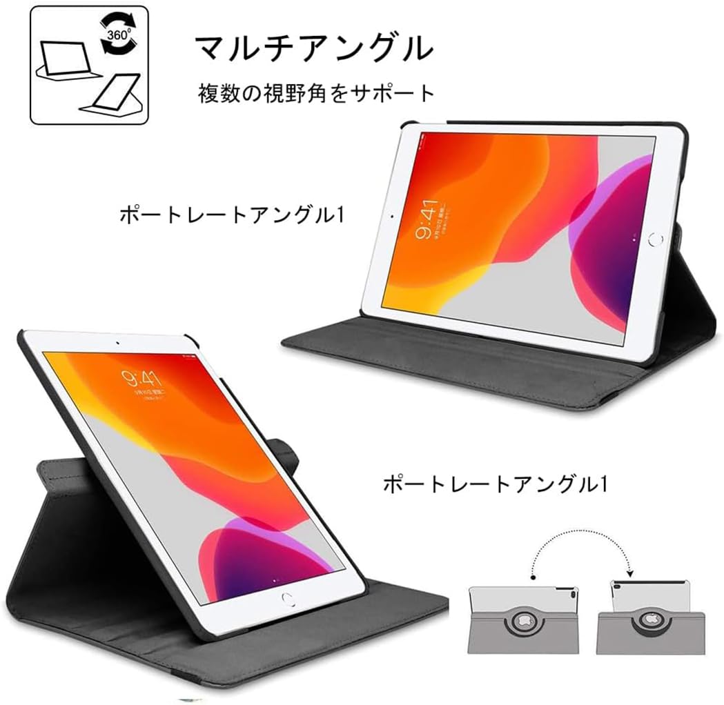 iPad 9世代 ケース 10.2インチ ipad ケース 第7/8/9世代通用(2021/2020/2019モデル) 軽量 手帳型 360度回転スタンド オートスリープ機能 3段階調節可能 固定バンド 脱落防止耐衝撃 耐久性 (黒です)